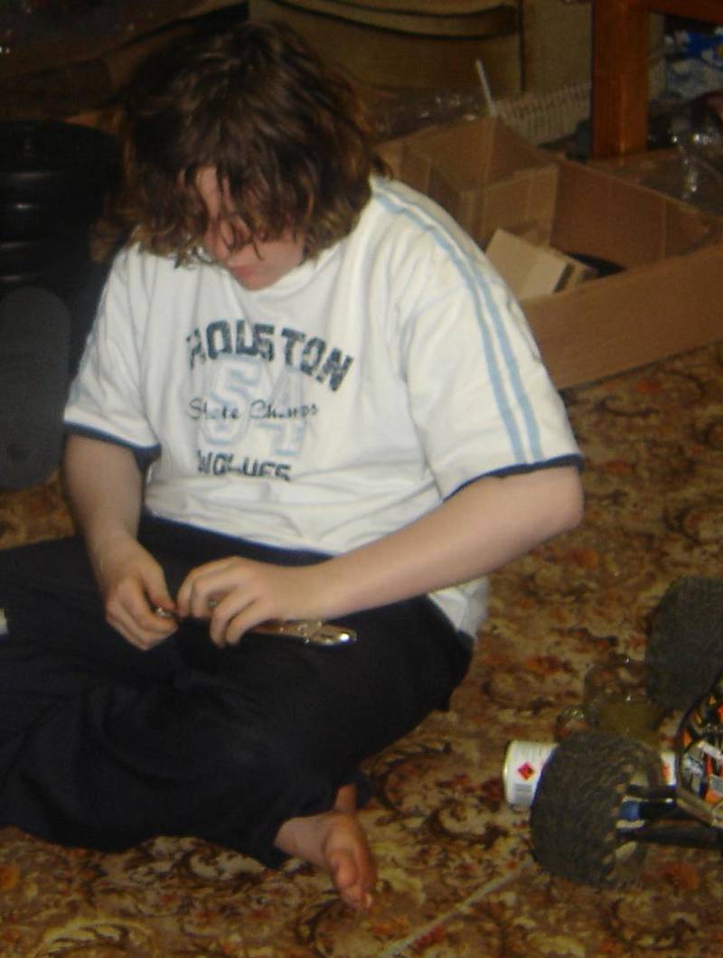 here my drifter, a stock 1:8th kyosho inferno GT, drift's nicely, even on rubber tires (.28 power!), and for the hell of it a pic of my brother putting together his weight set