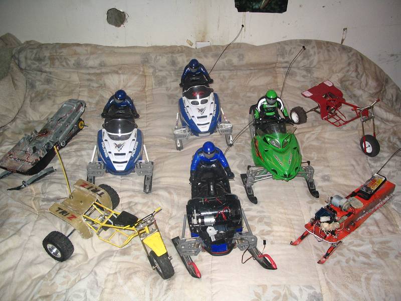 this snowmobile here that i made i call a torro ski 440 tr and this is an r/c 3 wheeler i made....