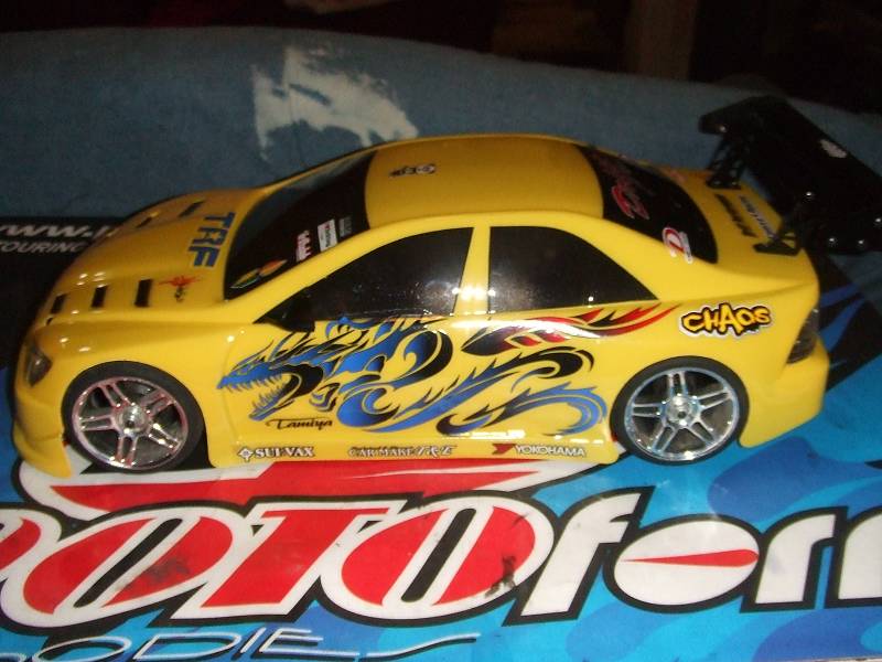 im still undecided between buying the EU Subaru HPI Prova Impreza or the Honda Odyssey body shell, but ill be buying one soon. i manage to make some spare time with my old body and with some spare carbon fibre sheet i decided to clean it and convert it to a drift type shell. the front spoiler was handmade by me lol. underneath is a corally RDX racing chassis. thanks