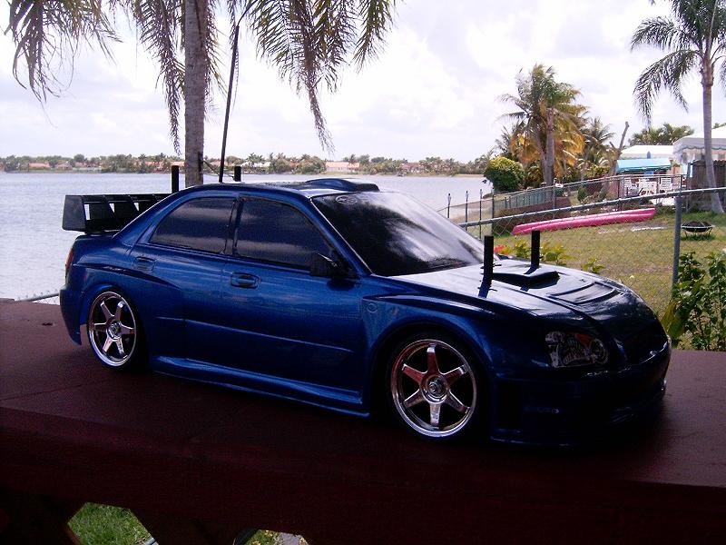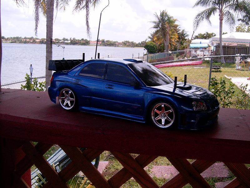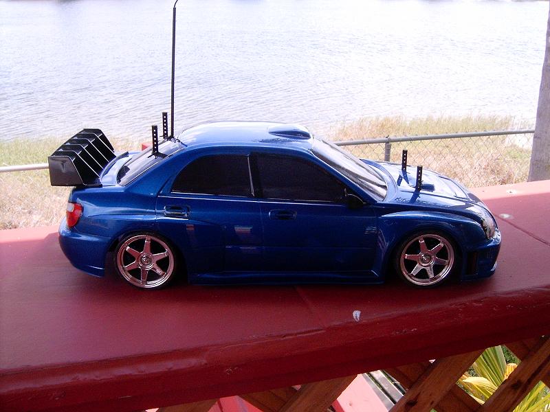 Here is my tt-01 wrx with new rims and also I put the spoiler and mirrors.