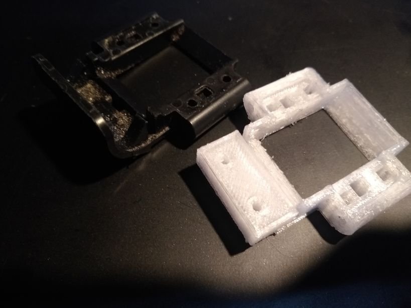 Designed a new piece that the arms mount to so I could also add a bumper. This is the 3rd iteration. In the 1st the bumper was part of the mount, but I decided it would be best to have it screw on as I can also change the bumper design easier, and not have to take the entire RC apart to switch it out..