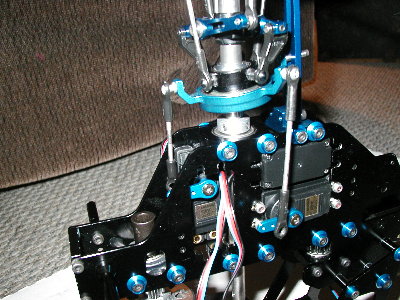 One thing though, you may want to flip your rear two swash servos so the horn is facing the other direction, and then flip the arm so it is in the same direction as it is now. You will get the proper alignment for your linkages then.