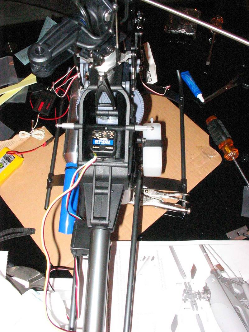 Should I mount the gyro in the middle of this space or toward the main rotor shaft as far as I can or toward the tail rotor as far as I can?