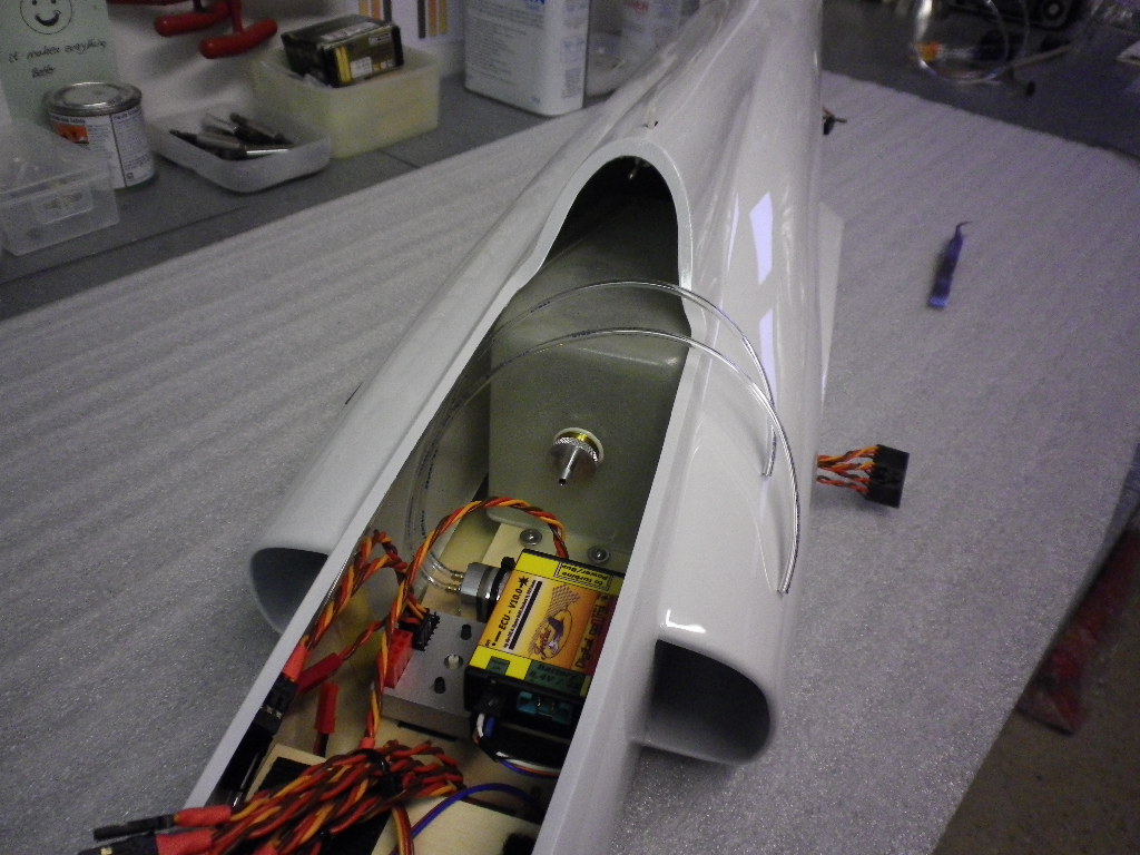 Currently 12s 4000mAh packs fit easily into the space provided and remain below the canopy break line so nothing intrudes into the cockpit area. We plan a simple vac formed cockpit set but due to time this will have to wait till after Jetpower.