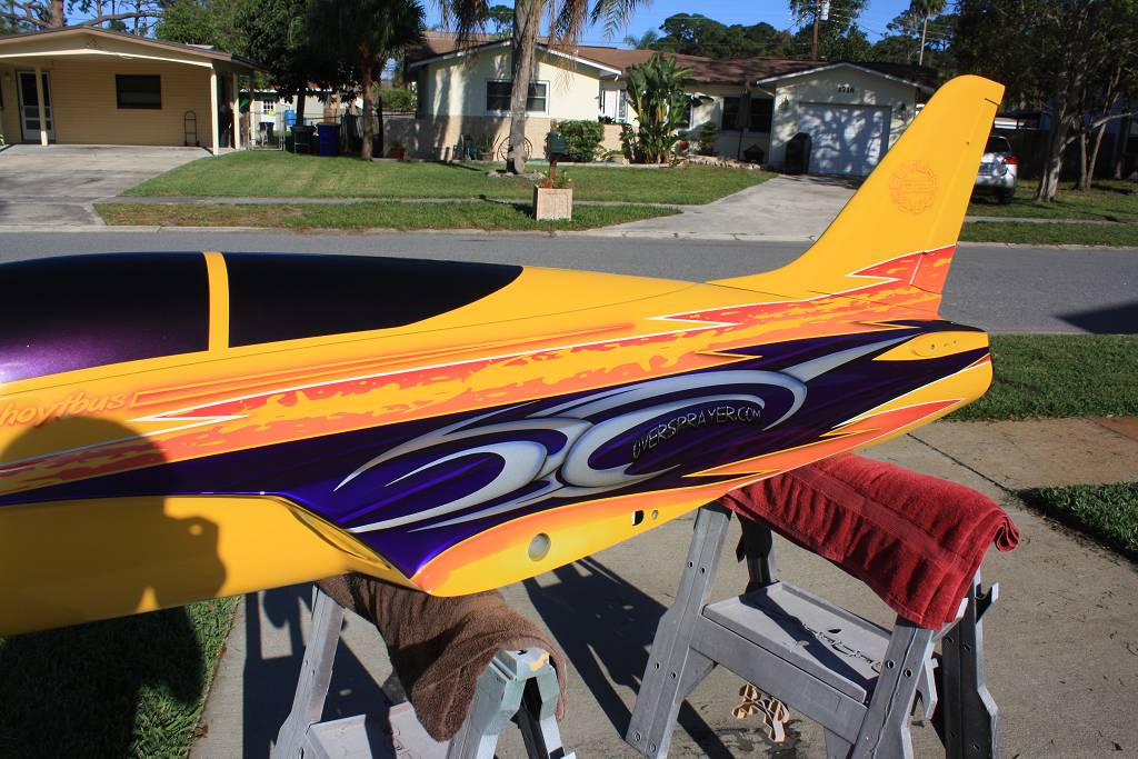 Ok I got it cleared this morning and it has sat for a few hours so I can handle it now Not enough to put the wings on but you can get an idea of how it will look. I had this jet for about a week and a half and now I will start the buffing process. which I should have done in a couple of days. Hope you like!!!