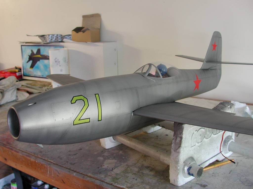 Several years ago I built a Yak-23 from an RBC kit. It was a small,bungee launchedEDF that was a balsa build upwith strip planked fuse. I glassed it, added some panel linesand rivets,and made a fiberglass belly pan so it could handle belly landings without sustaining damage. It flew really well. A larger one of these would be nice.