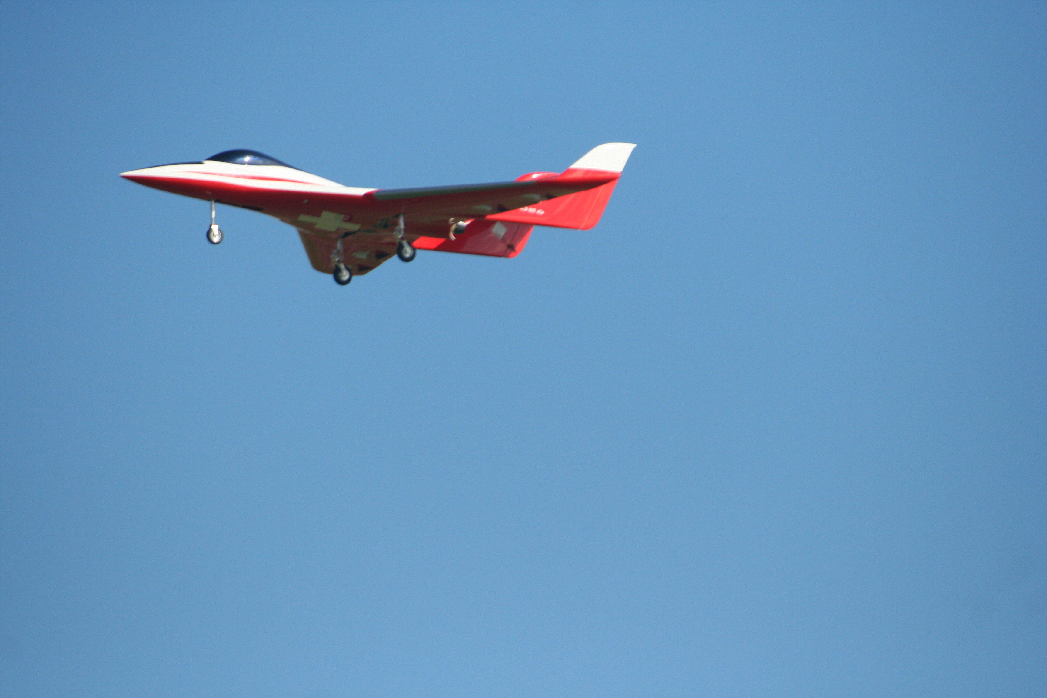 It is the only plane in the world to be able to hover and to perform basic 3D maneuvers WITHOUT THRUST VECTORING and WITHOUT GYROSCOPES. The speed range on this model is also unique since it can fly from 0 mph ( hovering in front of you ) to 300 mph in a full power pass with our B100F.