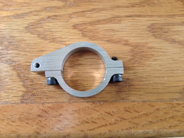 For those few with this aircraft you may have noticed the spade bolts screwed into the nose gear strut to jury rig some steering. I was uncomfortable trying to Loctite this or jury rig some pull pull system and had a machine shop make a collar to clamp on the strut with the steering ball link. Perfect and no fears of wobbling down the runway.
