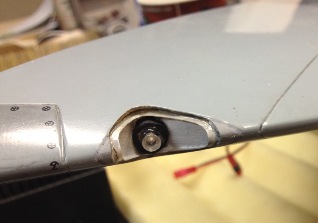 I simply cut a hole in the leading edge, installed pieces of light ply inside the wing, drilled a thru hole, and glued the LED in place. See photos below. Sorry I missed you at TG.