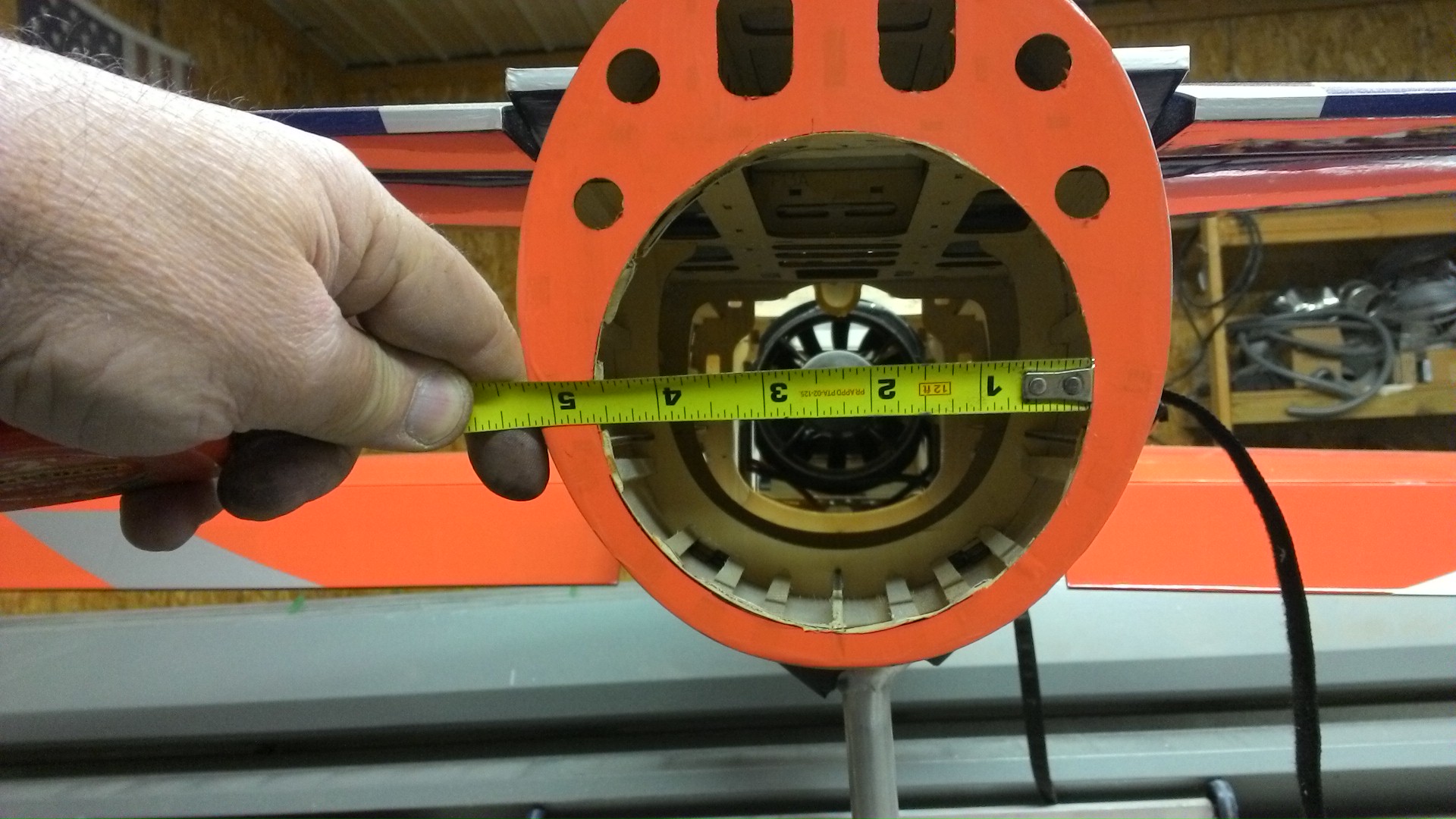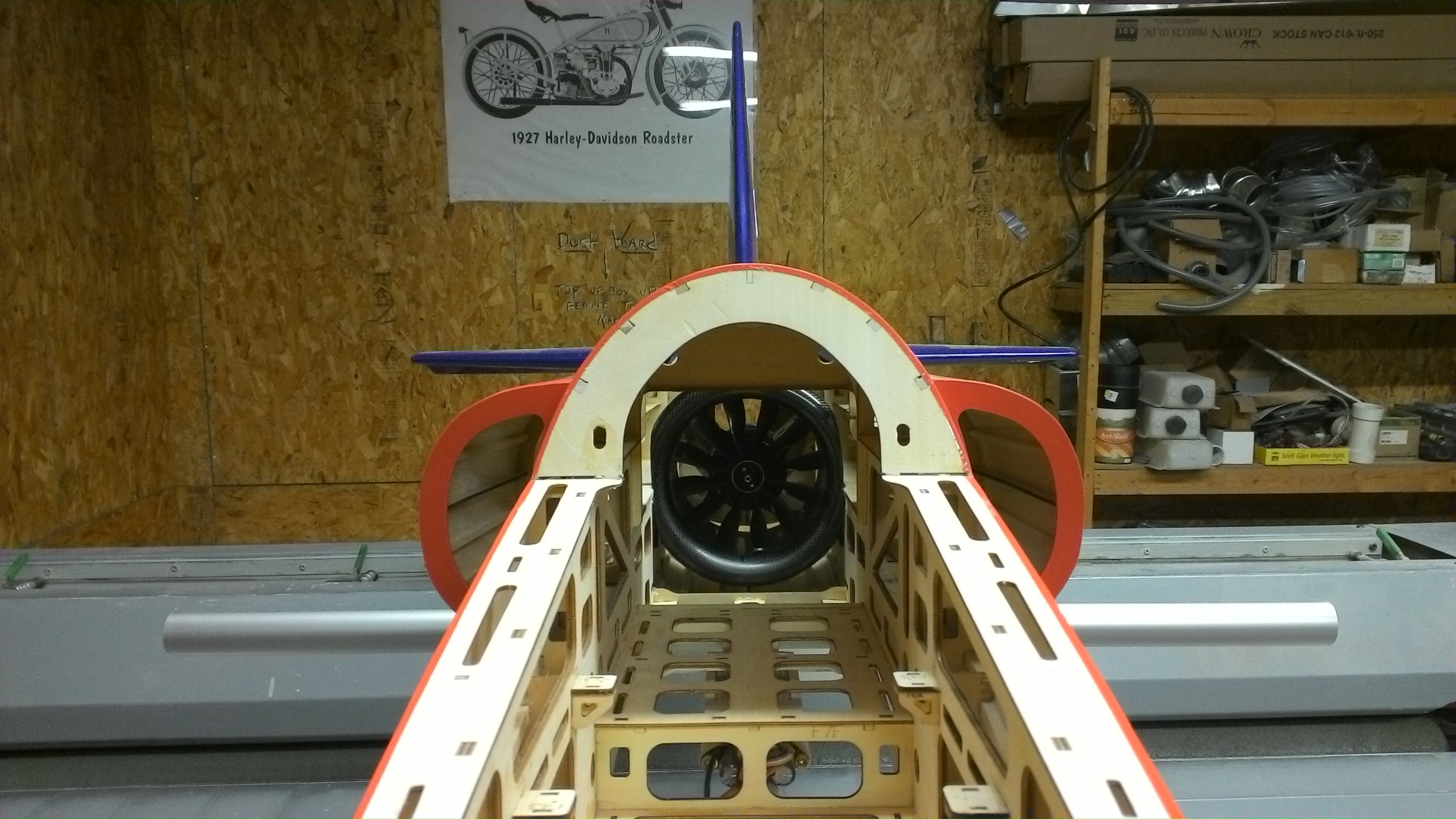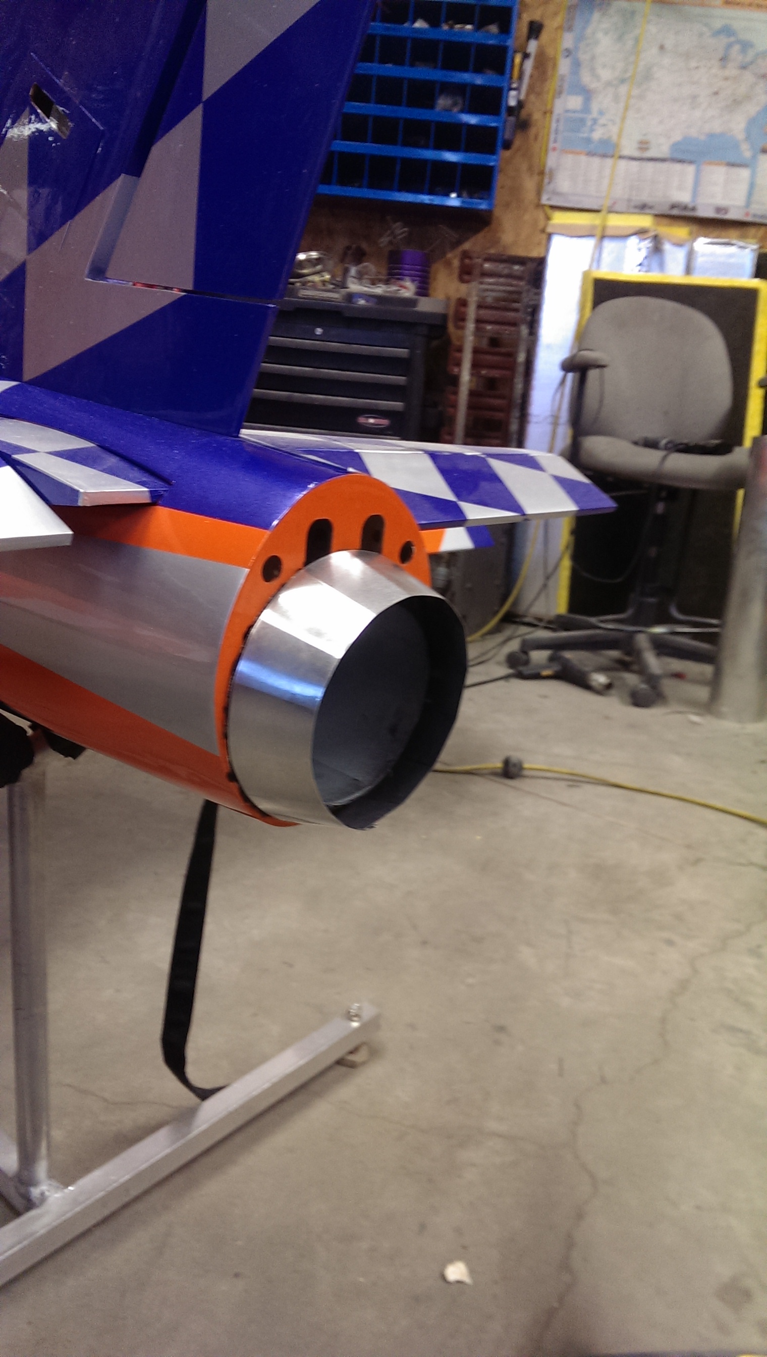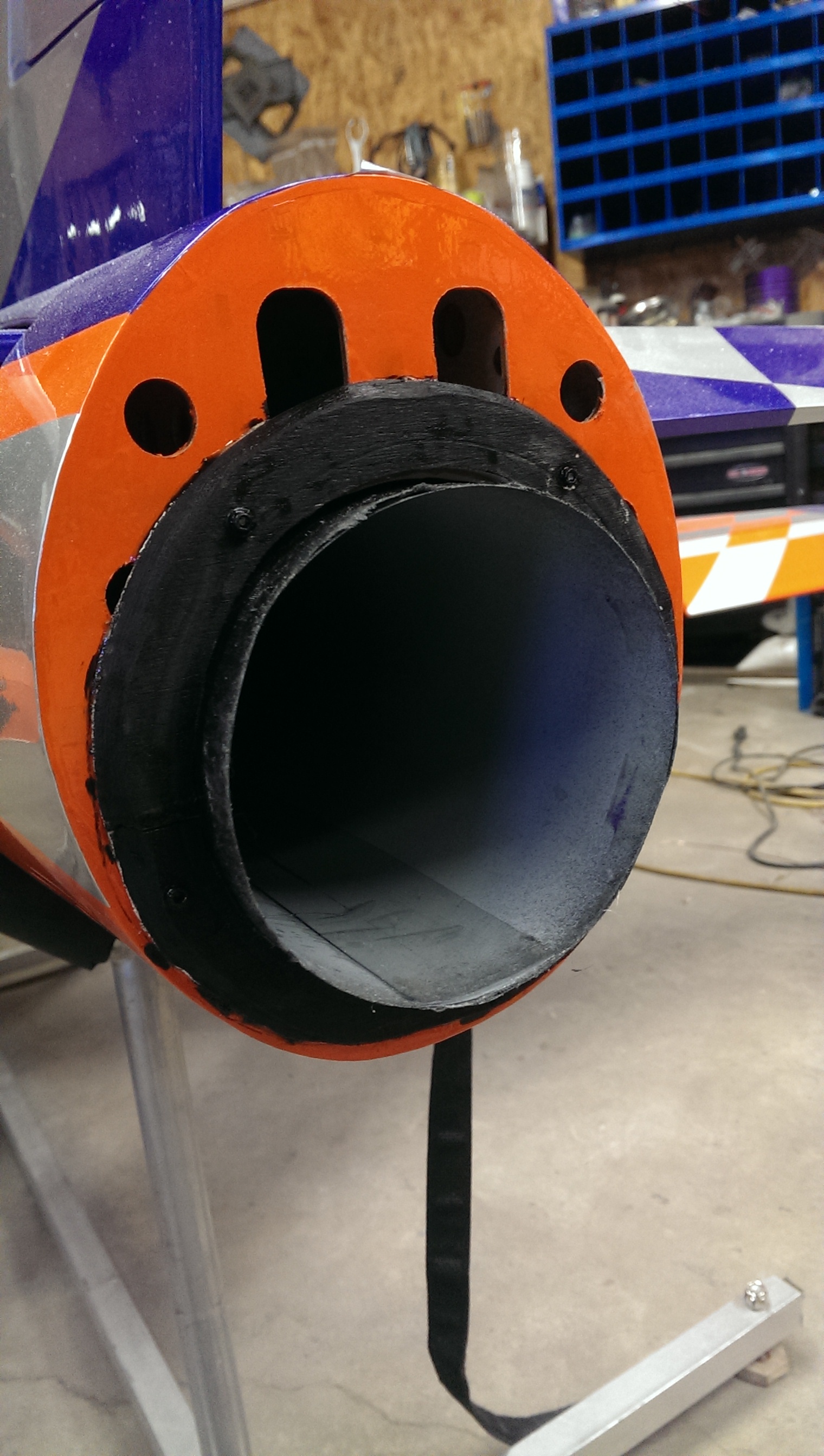 So here we have some progress, Trimmed the mounting rail for edf, trimmed the edge of the intake ring to fit (very snug by the way), opened up the tail section for the 105mm thrust tube....