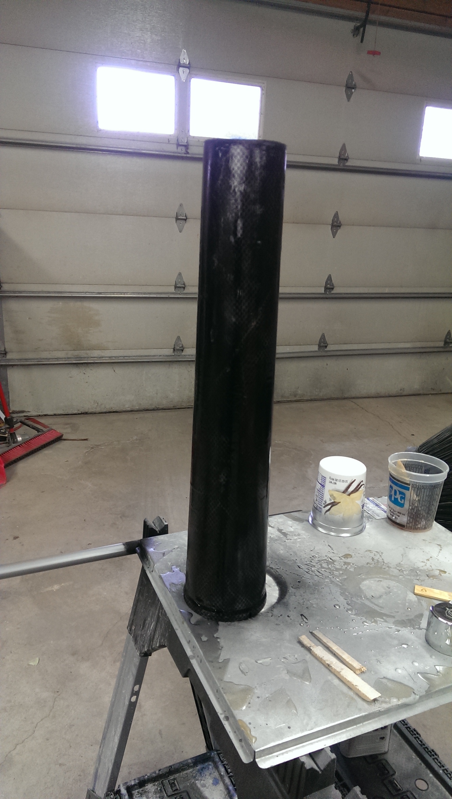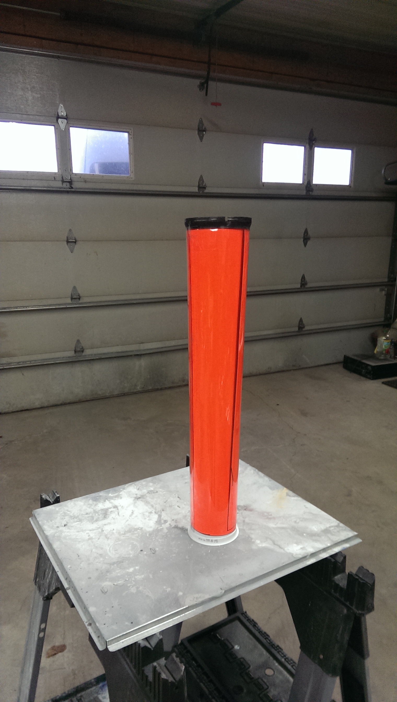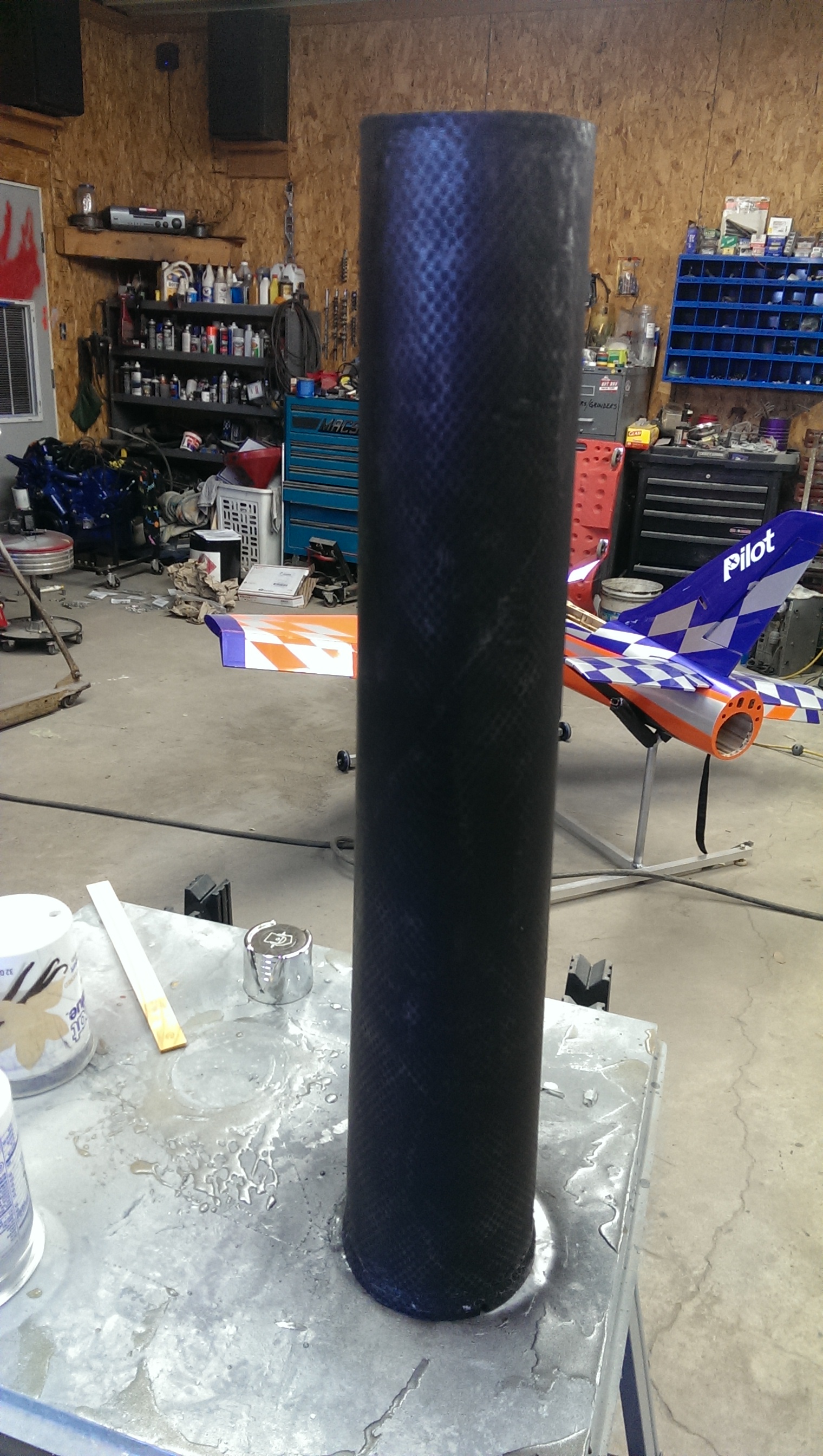 Finally got some time to build a decent Thrust tube. I started by making my template with poster board, then cut .005 mylar, rolled it up and taped inside and outside seams with packing tape, then I etch primed the mylar on the outside and layed a layer of 5 oz. cloth and resin to hold everything together. then I gave it a custom faux carbon paint job....lol came out very light and strong.
