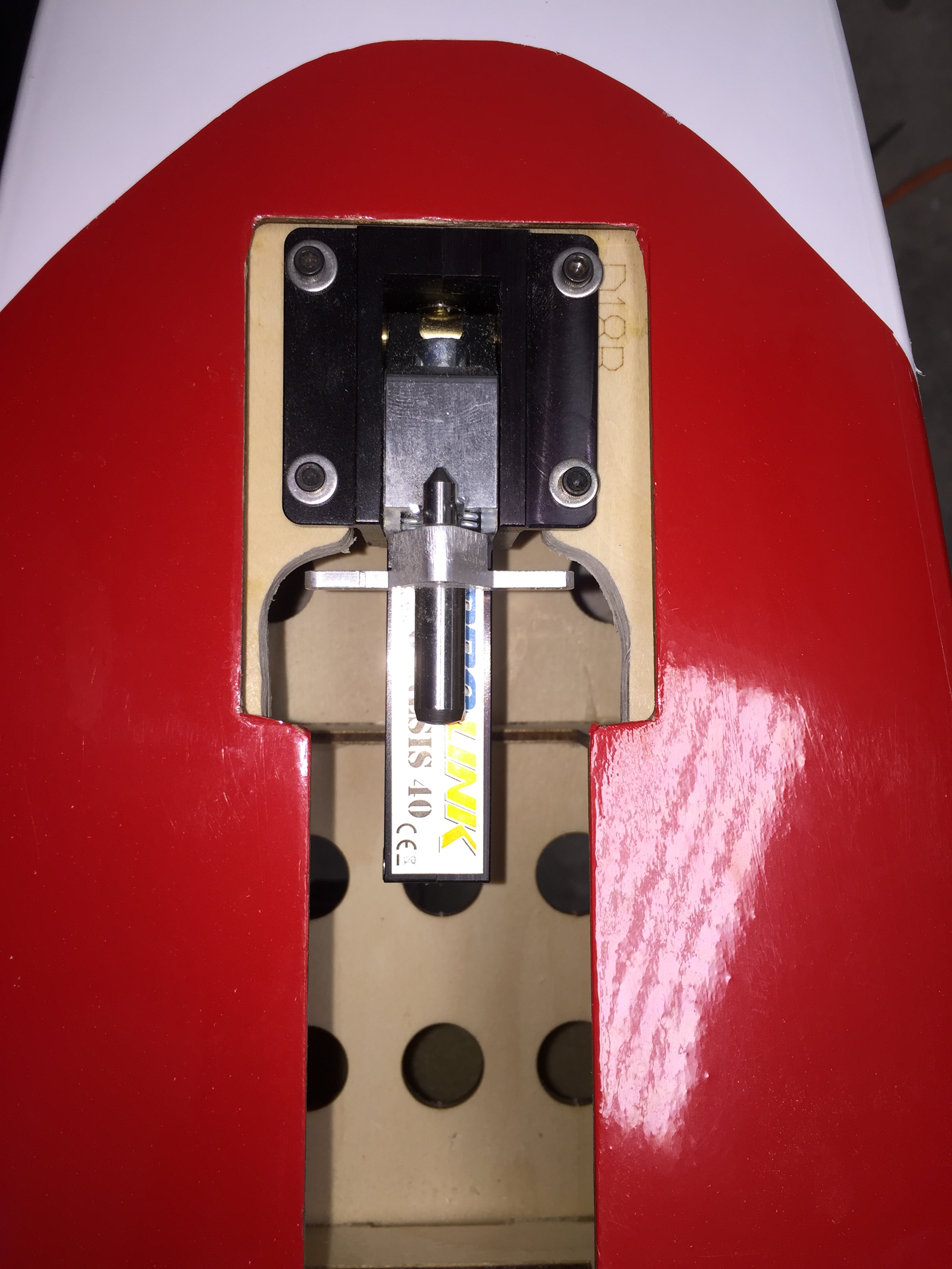 Next was gluing the vertical (no pic, but pictured in the manual). I contemplated adding blind nuts to the base of the vertical to pull it down tight during gluing, but ended up not doing it because of limited access. This got me thinking, it would be extremely easy to make the vertical removable with a couple tweaks and a pin style rudder hinge.