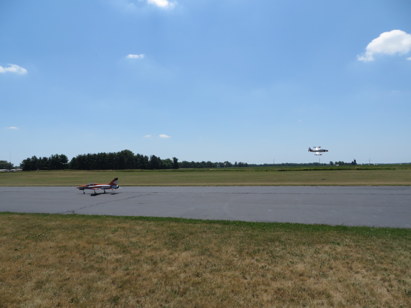 Got Ali to take a flight on my T-33, this past weekend at Winamac, perfect flight, the T-33 has presence in the air, which several people said, at 201CG. was good for scale, still slightly nose heavy,as shown by 45 degree upline and half roll on it"s back and the nose will start to drop slowly.