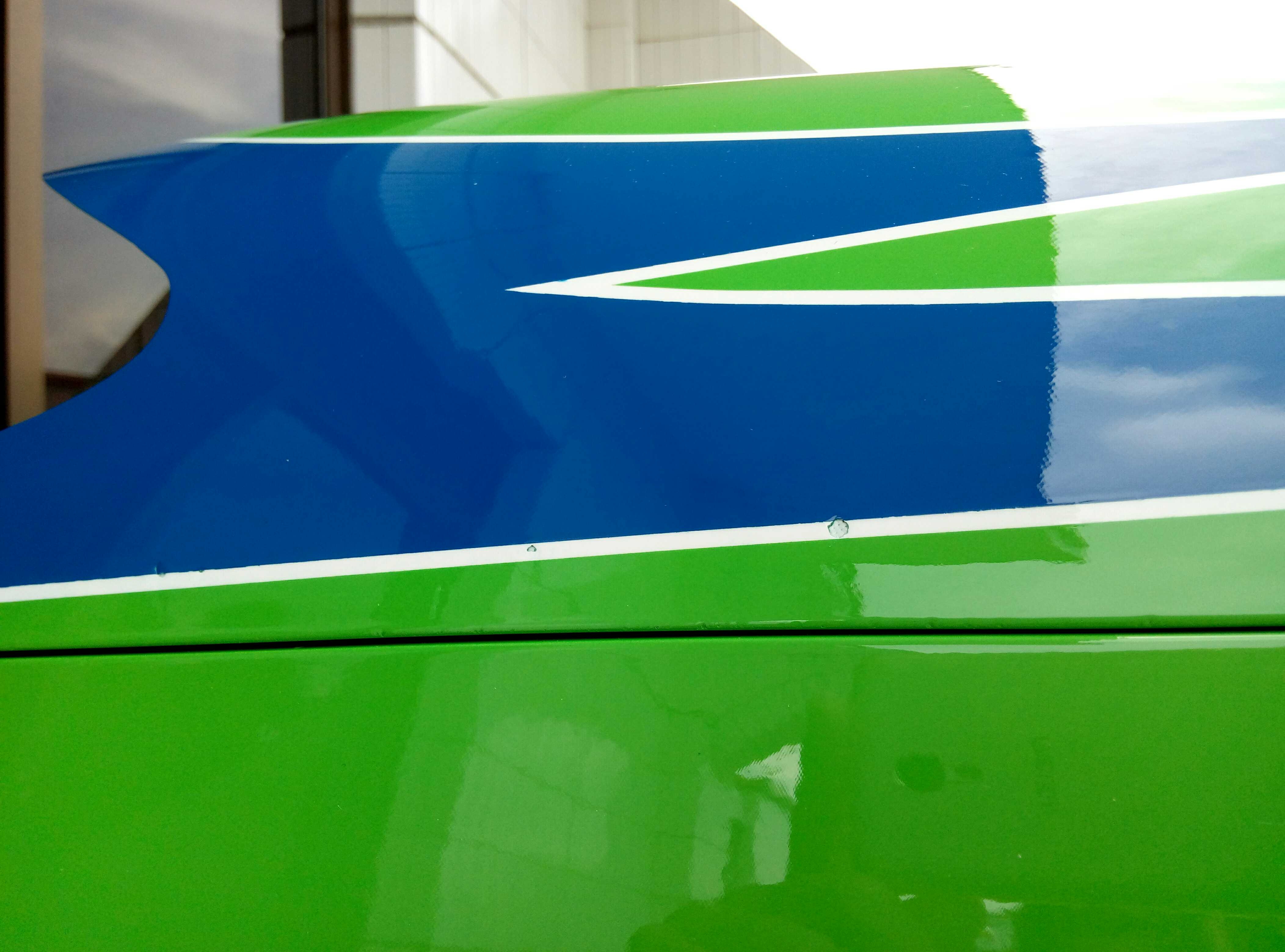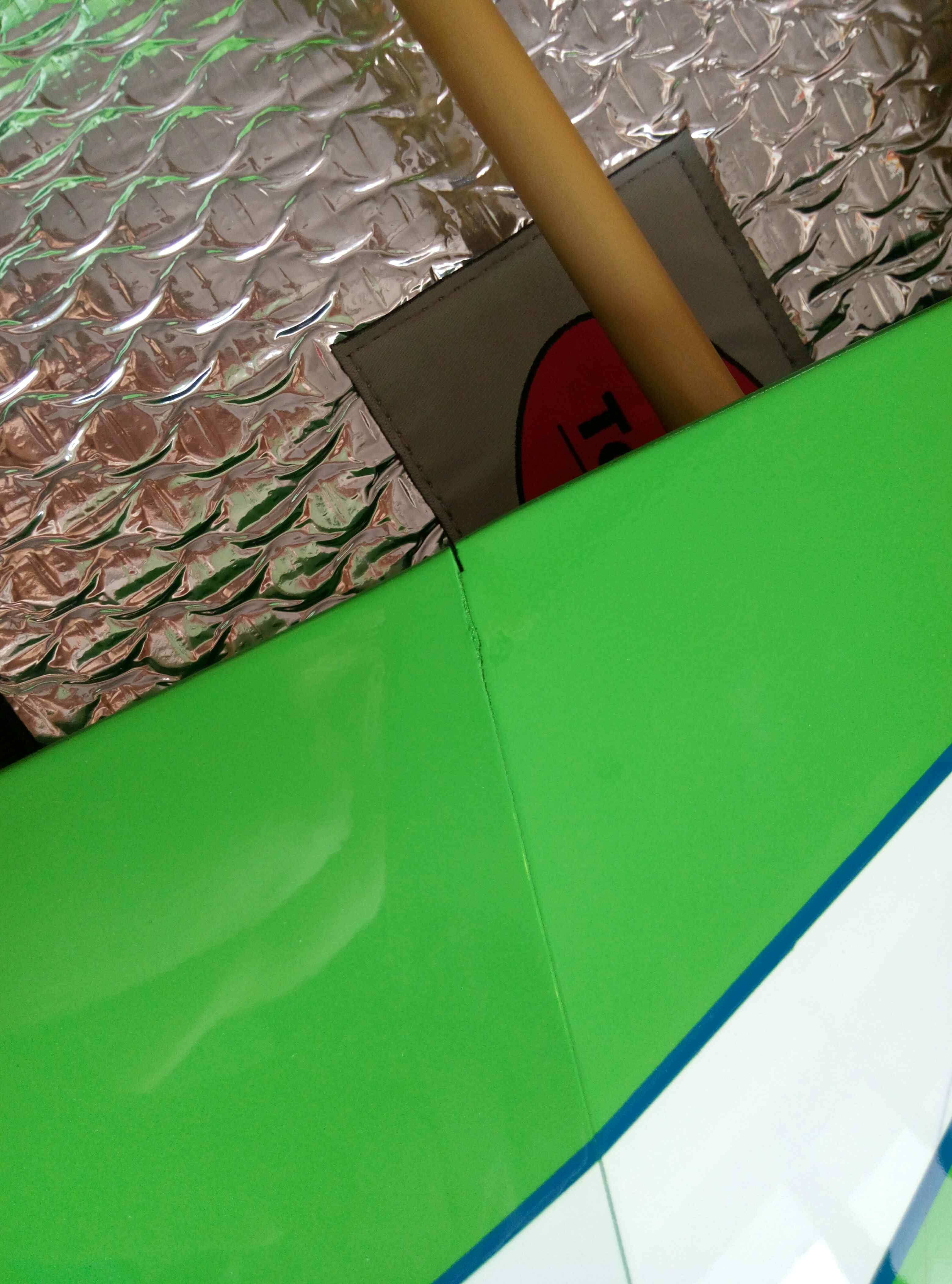 If you look at the first two pictures, there is paint in the void. We all know that when you paint in the mold and have a void behind the paint, the paint will bridge the hole in a thin film, or it will pop out leaving natural colored resin/cloth in the hole.