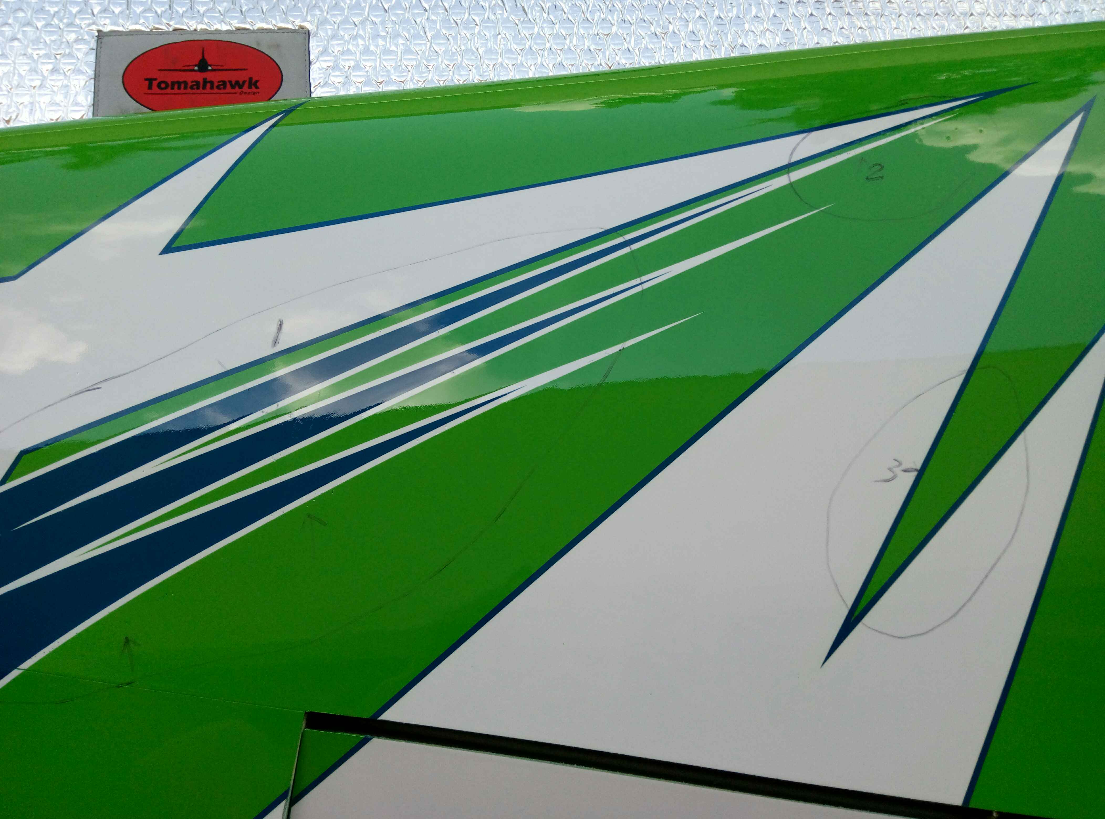 The following pictures is my 2.5m Futura of Tomahawk , Left wing , right elevator , canopy frame all has small holes , Left wing is most serious. Such products can be shipped to customers ! Is it a bad intention to deceived the consumer of other countries or his quality is so poor ?
