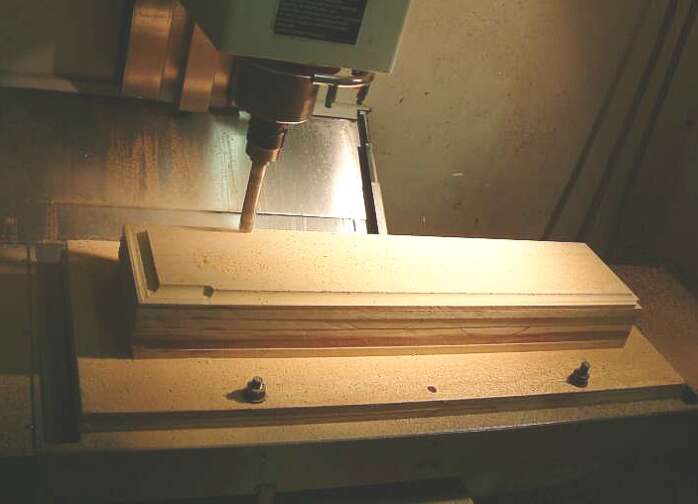 6 layers of MDF wood. We used 1 inch ball end mill, CNC
