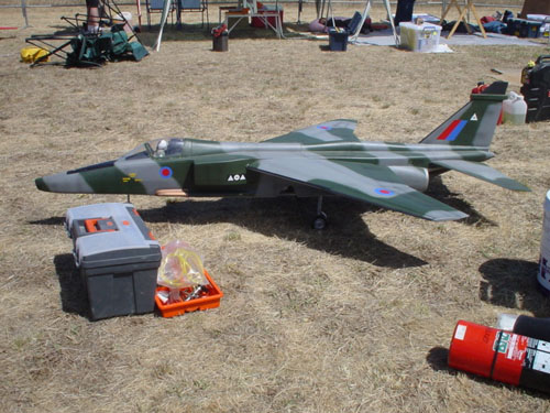 Heres an interesting pic. from 'Mangalore' jet meet. This scratch built Sepcat Jaguar tipped the scales at 24 lb's and flew very well with PST J600 power...