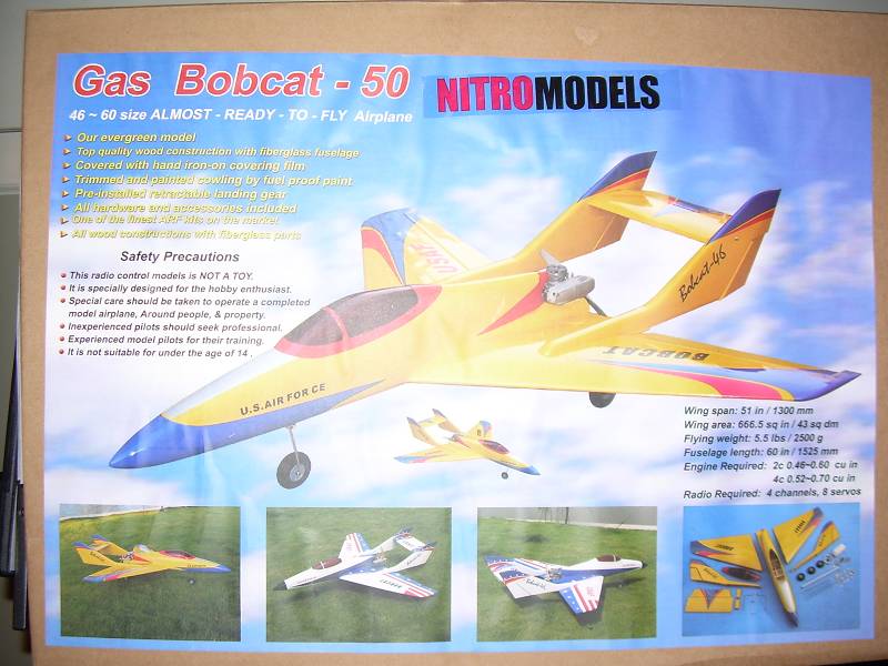 All you guys that are asking questions about the Bobcat -50 just need to pony up and buy yourself one. If you're flying jets you surely can afford a $140 for this little plane. At least the prop guys at your local club field won't hate you as much. Hehe