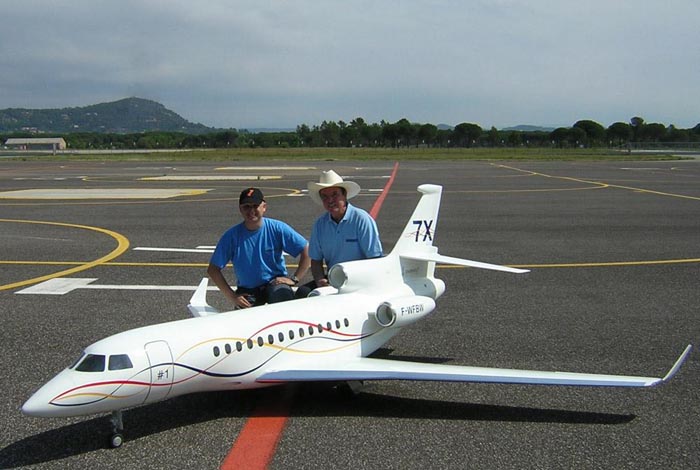 The Aviation Design 1/7 scale Falcon 7X was designed by Francis Laurens, Dassault Aviation employee at Istres flying test center. Using Catia CAD drawings, Mr Laurens made a superb plug and toolings from the most beautiful bizjet from Dassault.