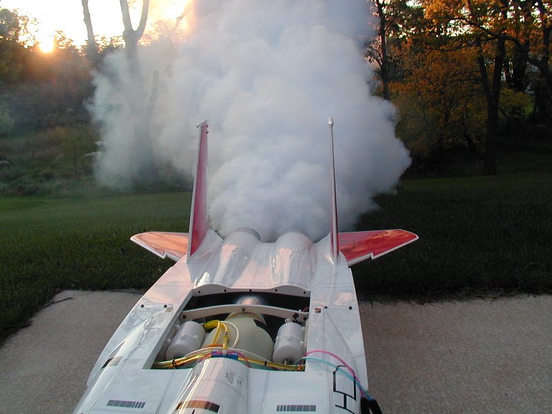 I'm finishing up a Turn-Key finish-out for a Yellow F-15 customer. I've built the centerline tank into a wet tank (holds 33 oz.), and plumbed up the pump. It's a JetCat pump system. What I'm wondering as I'm doing this is whether or not anyone's had problems with the smoke oil harming the inside of the pipe? I've always thought the shiny, reflective SS interior is best kept shiny and reflective. Is the smoke oil burning up in there doing any harm?