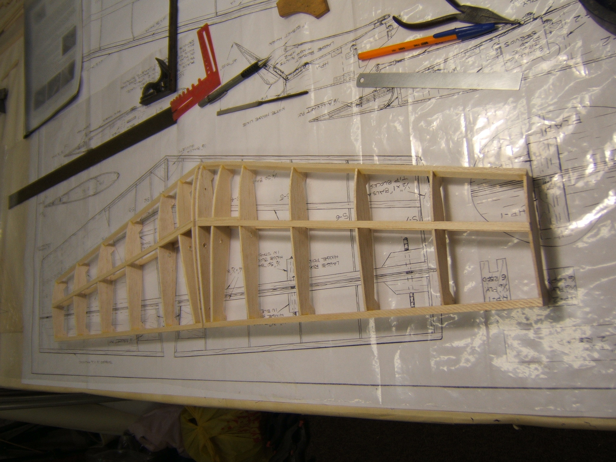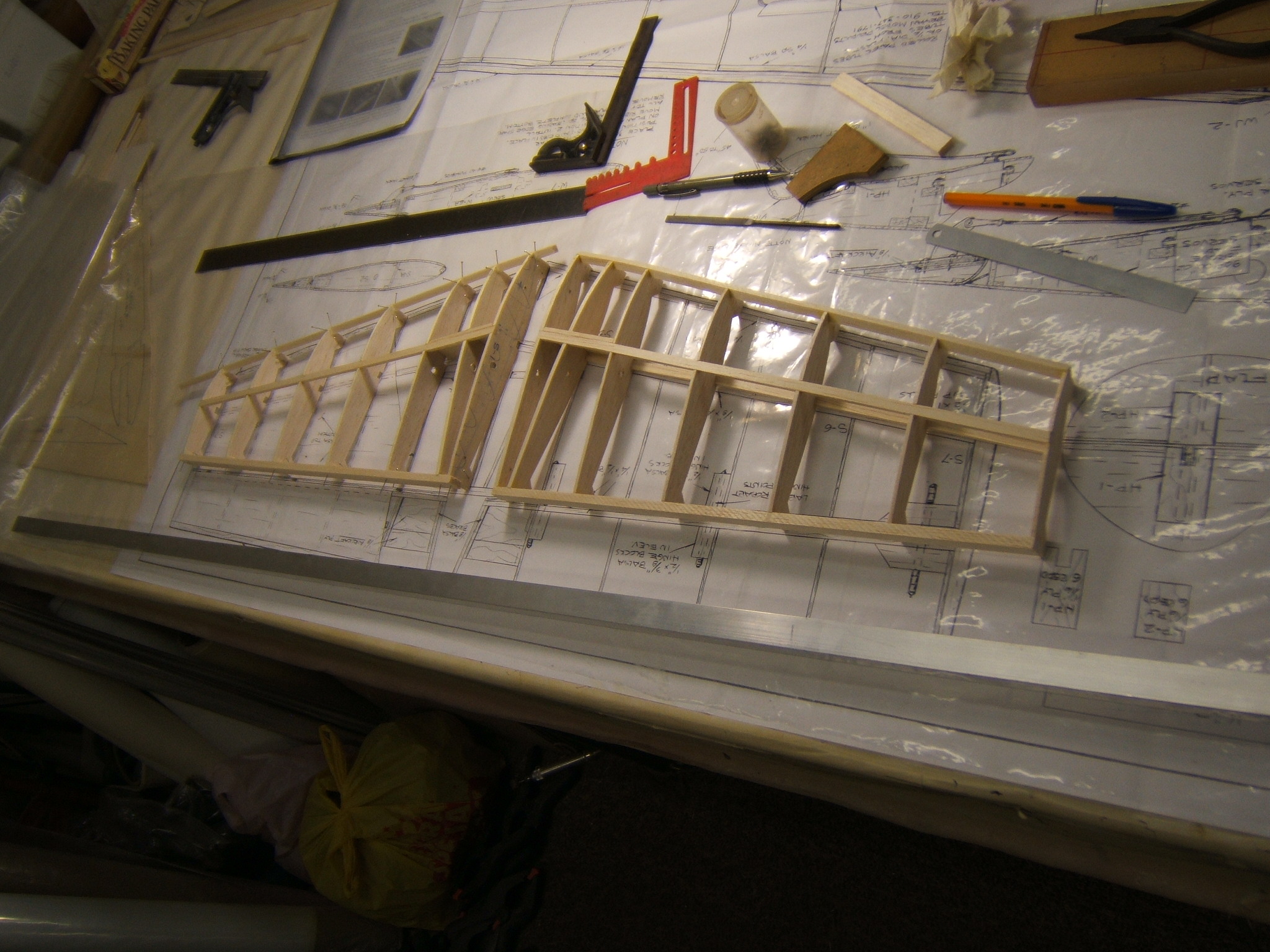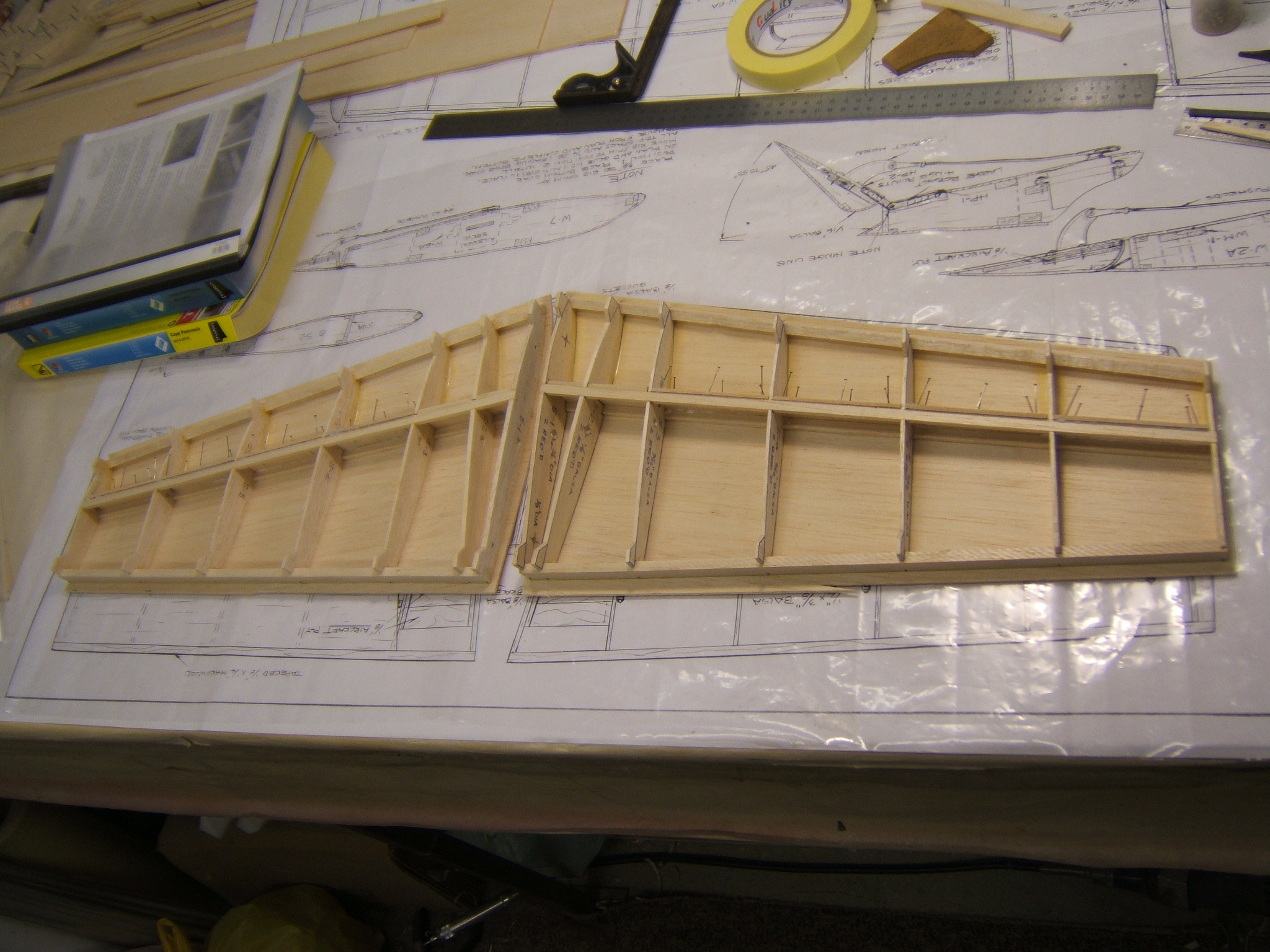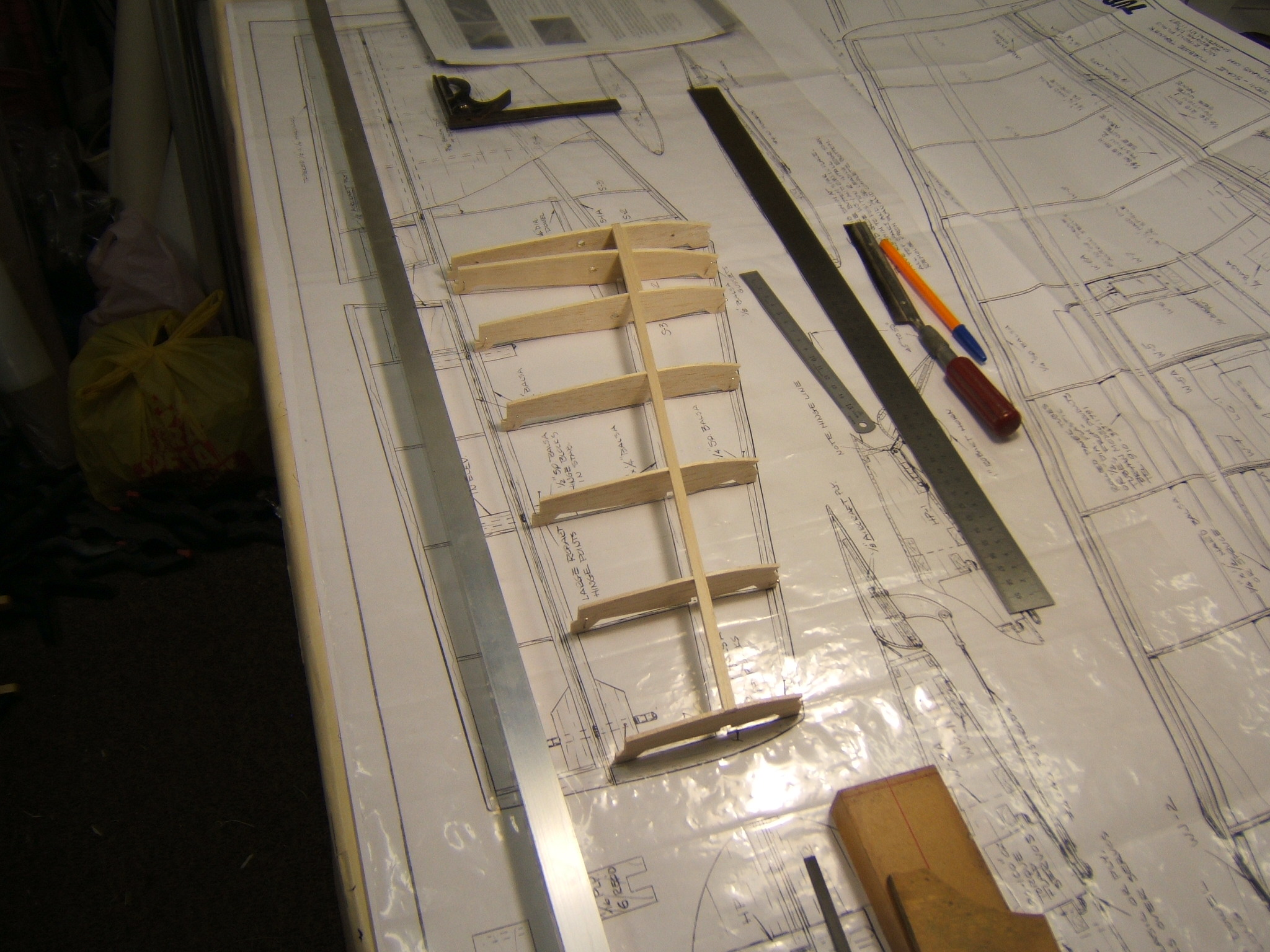 I removed the RH side stab from the drawing and added the lower spar. Then I built the LH side stab and will add the lower spar tomorrow. Used the RH panel as a reference,to get the LH panel exactly the same.