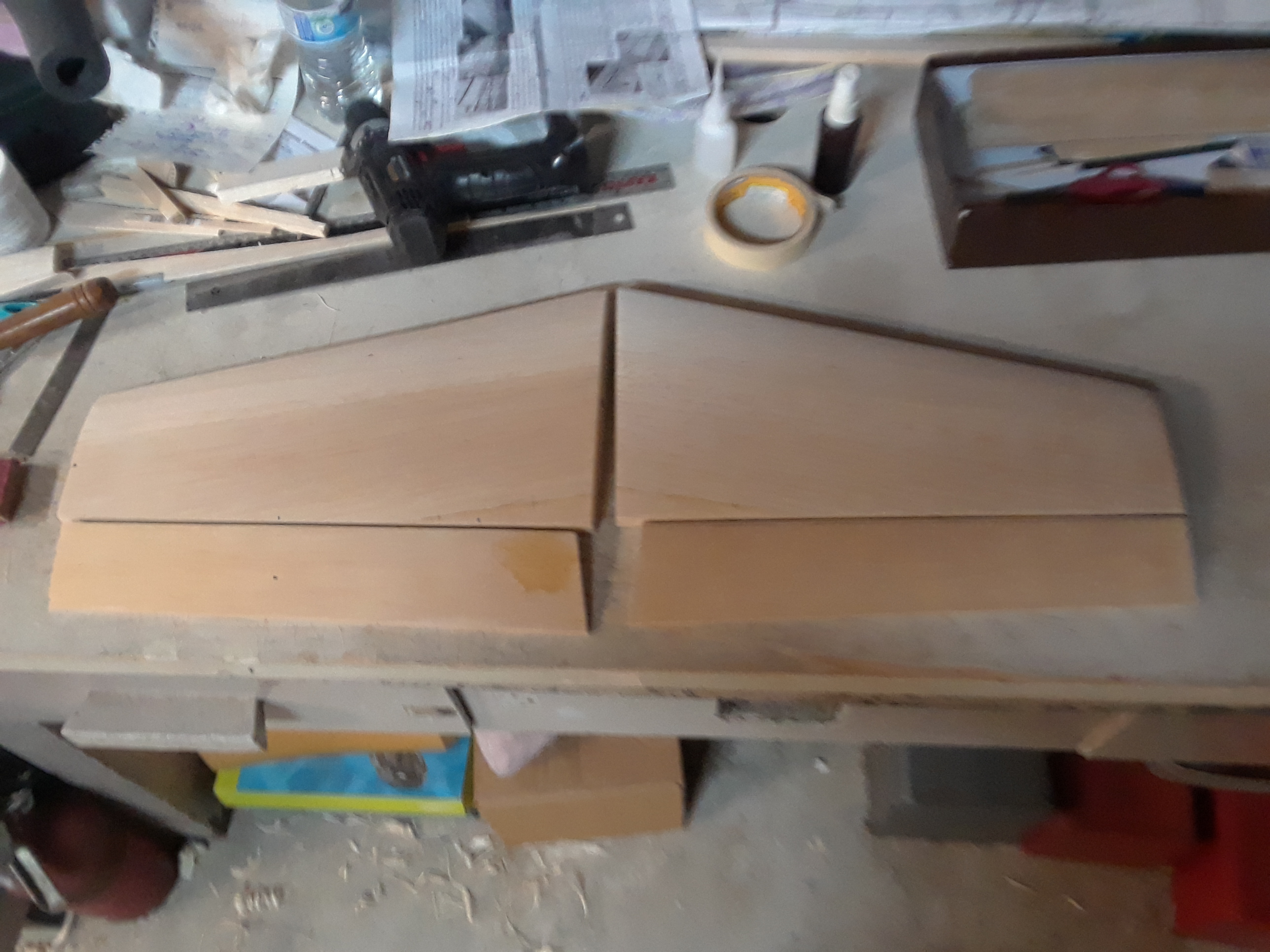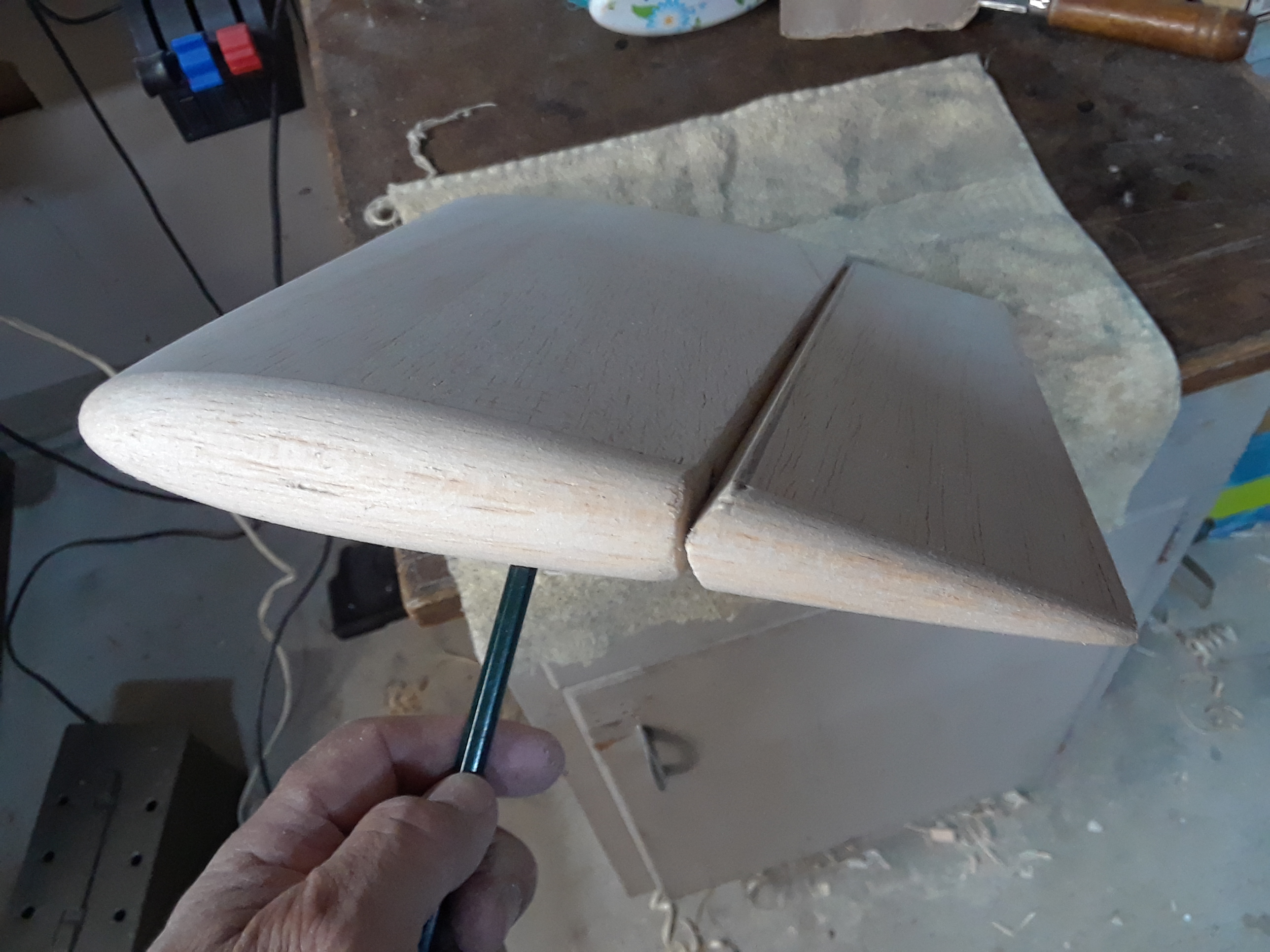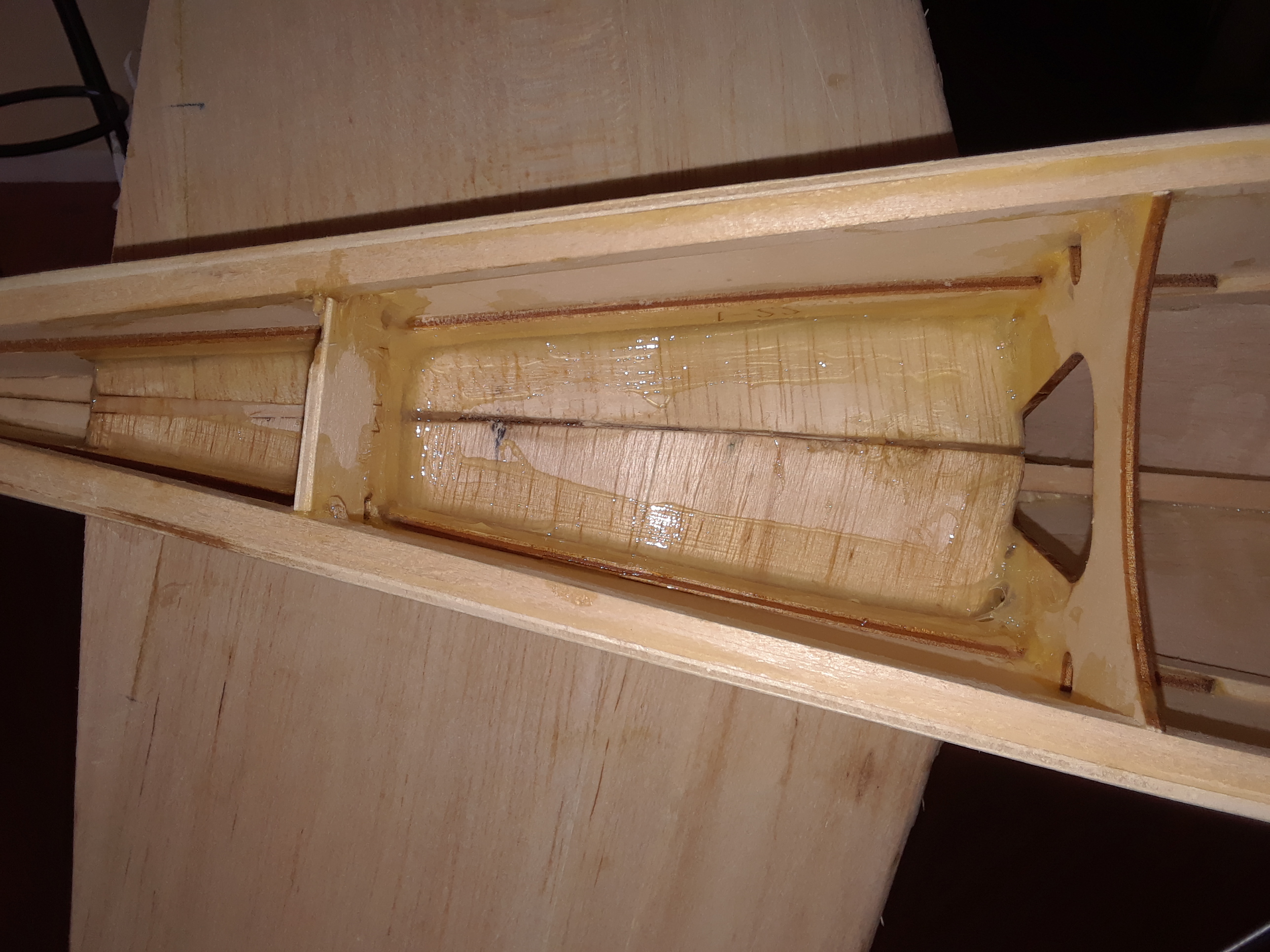 Ok then, the stabs are done and glued together, I will glue them to the fuse tomorrow, I have done that before where the stabs are glued to the fuse before they are covered, it takes extra time to cover them but it is something I have done many times.