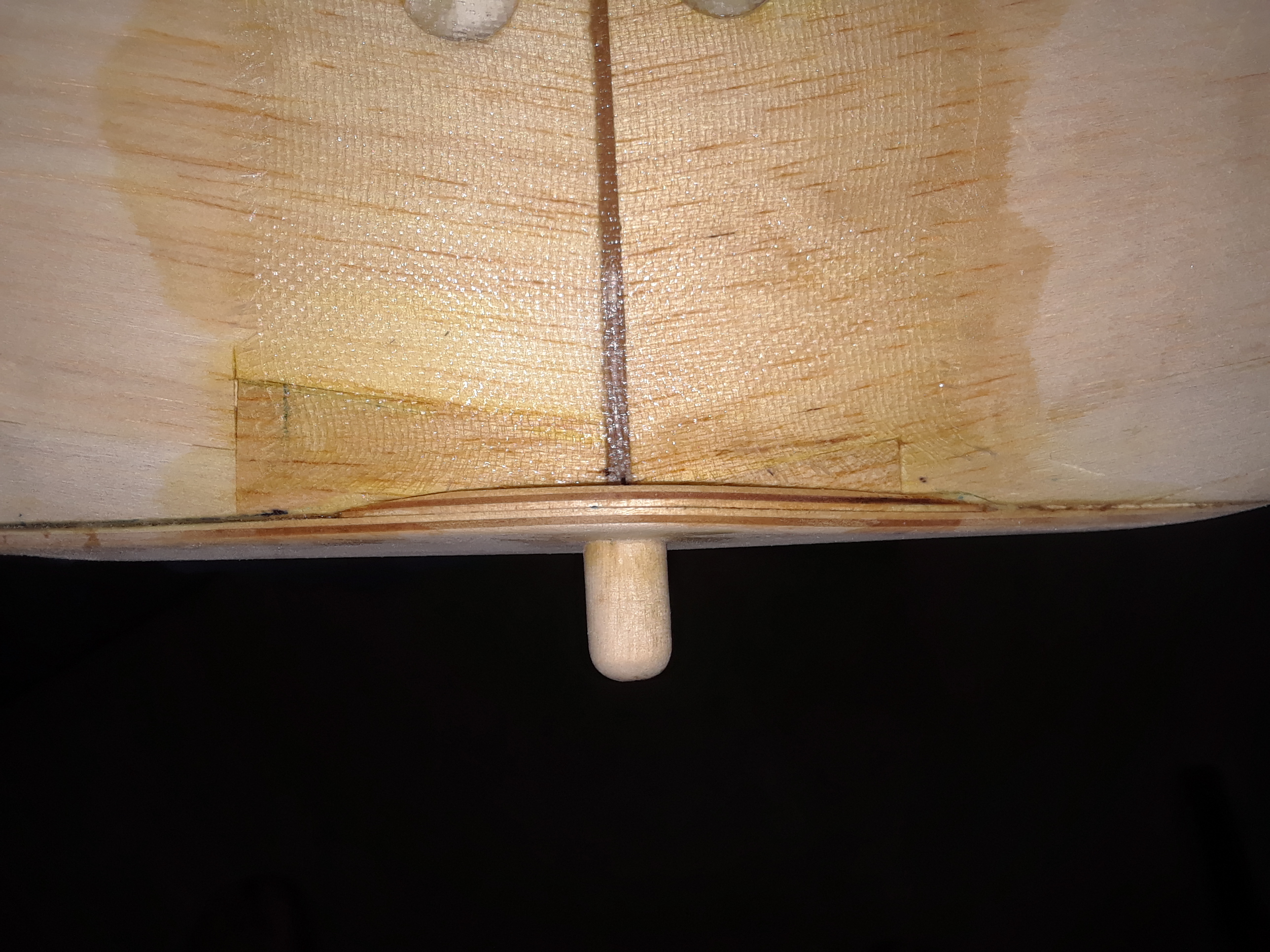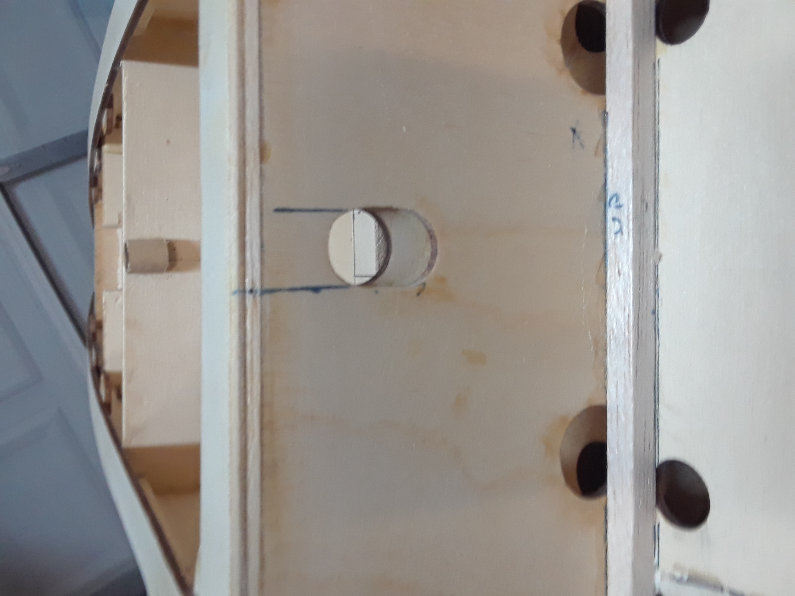 WJ2 hole is long, here, you can easily see the elongated hole that allowed me to fit the wing on and secured it with the nylon screws then I was able to secure the dowel with WJ2A from the back, I can see that the WJ2 bulkhead was not cut in your kit like the one on mine, but that easily fix, right? after all you are just the builder