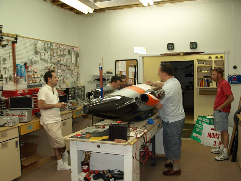 No flying photos yet but just some pictures of us sorting the models that have travelled from the UK, Frank Tiano has kindly let us carry out necessary work at his place - Thanks Frank!