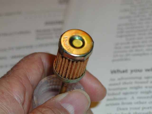 Here's more. You can actually make the entire assembly using JB Weld. The larger pleated paper filter will offer less resistance to fuel flow. >