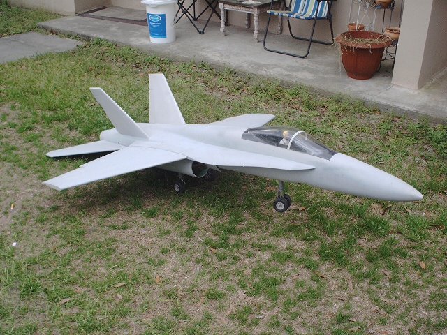 Believe it or not, my original intention was to stuff two VioJett fans into this F-18. And I probably could have, but there was not enough room in the fuselage for landing gear AND two fans, and my Bungee expenses would have been outrageous. Add to that the terrible flight characteristics of an overloaded airframe, and it became another discarded dream. I would like to keep the plane, but two months of not working means that I need some BYRO-CASH. This is my favorite photo of the plane - Blow it out your @@@!