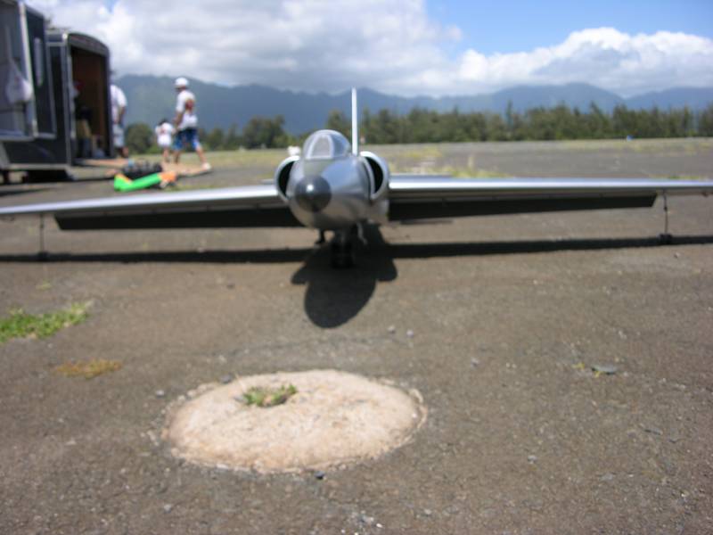 Great looking bird, maybe you could post some pics of your gear/pogos or other details. I always like to learn how others approach building. I think I read the fullsize could only turn at 15 degrees, called it the 'coffin corner', I believe. Imagine a big model will pretty much follow the same parameters. The turbine would be the perfect solution, they've come so far along. I had an old JPX 260P I thought about but it was too big with the fuel tank to try and 'shoehorn' in. John: I'm trying a 4 1/2" fan with a 700kv motor and 100A ESC I got from HobbyCity in Hong Kong. Of course, a Neu or comp would be the best. They have a lot of fans, quite cheap and a pretty big selection of motors, and have some good data on different configurations they've tried. I modified one of the motors with cooling holes, ceramic bearings and JB Weld'ed the windings. I've only run it in a test stand on 33v and easily got 5 1/2 lbs with my 3 little batteries. I just don't have the bucks to put in the eTurbax rig. I have a Turbax/Rossi .81 combo, but hate the sound of those, and think the fans are comparable.