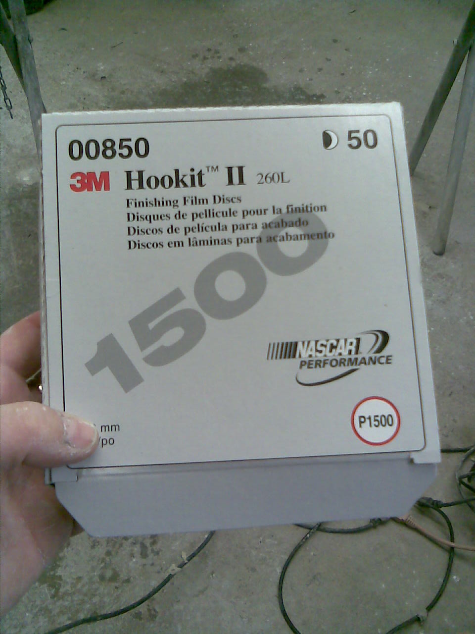 Picture 1. First of all, 1500 grit sanding disks. I really cannot express how important it is to use a GOOD high quality paper for these stages. Cheaper brands do not have consistent Grit in them and can leave deep scratches that you will have a very hard time getting rid of. The 3M disks are phenominal, they aren't cheap, but they will last a fairly long time, much longer than just a wet/dry sandpaper will.