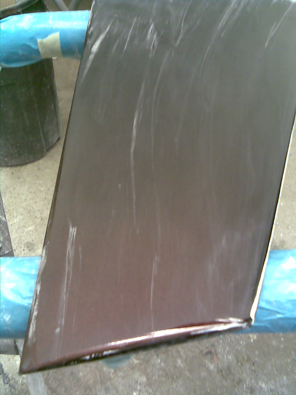 Picture 1. Here is the stab, it looks pretty good, but you can definitely see the orange peel in the light reflections and yup, there's some dust in there!!!