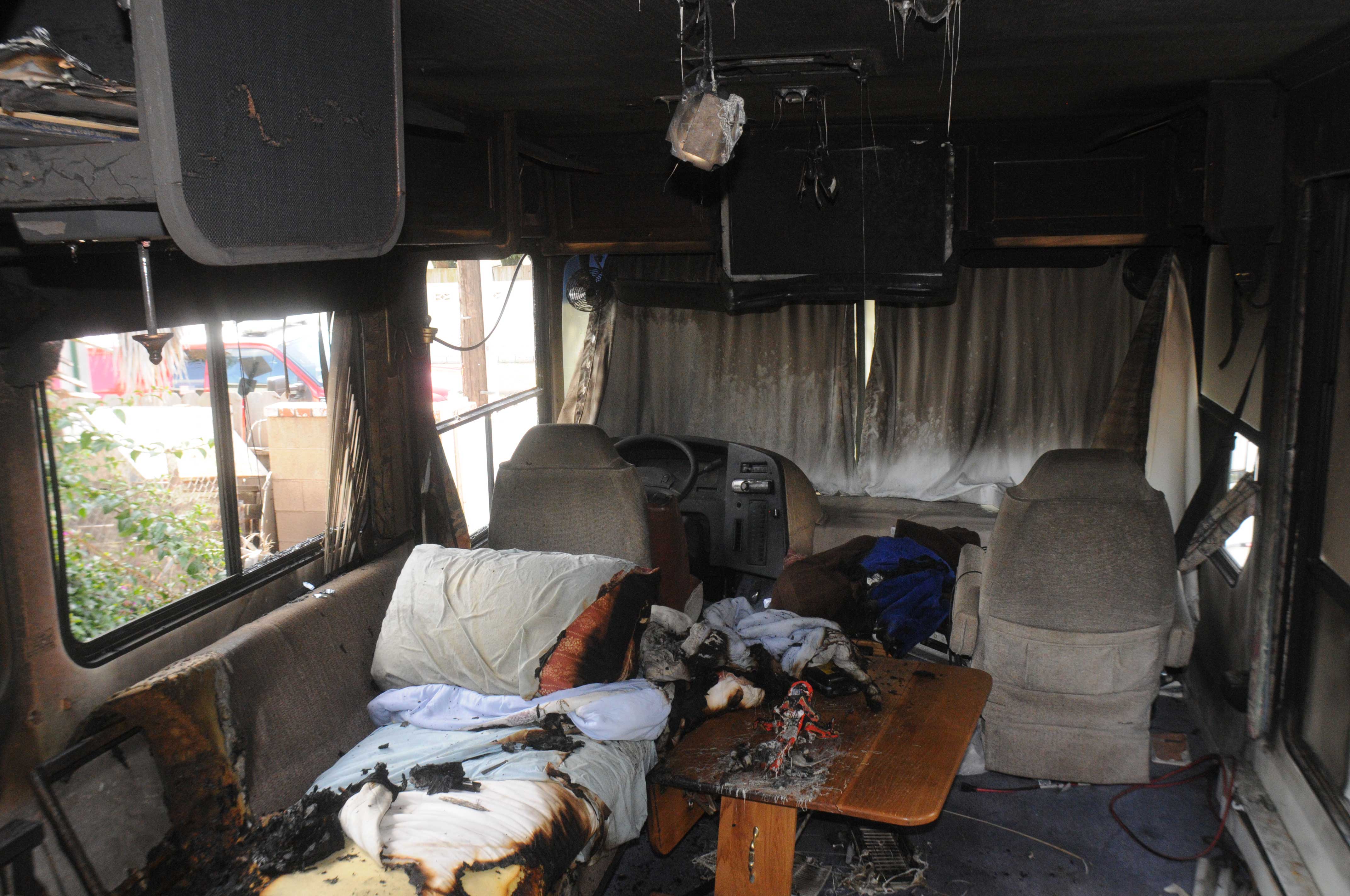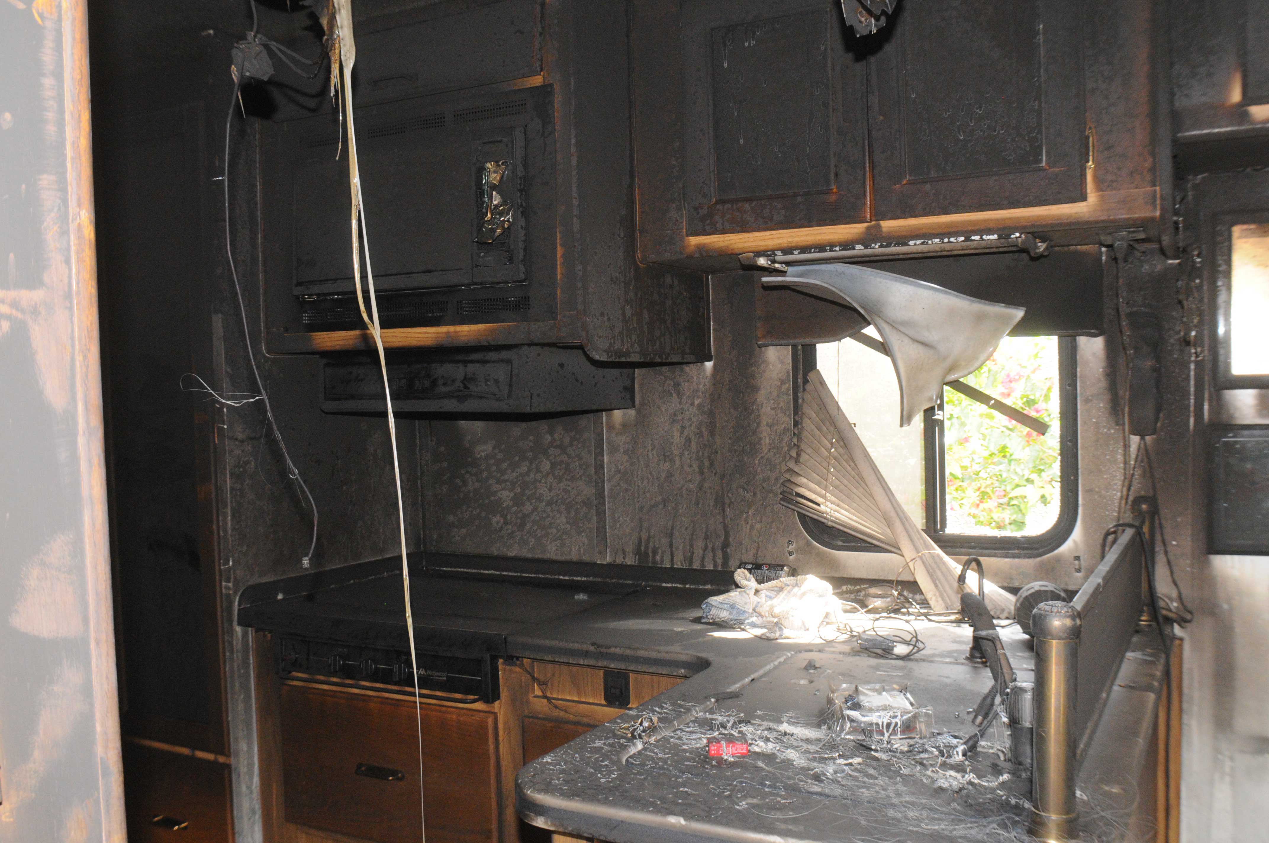 Packing my RV, getting ready to leave for ButtonWillow Spring Fling. I had a couple batteries on charge, so I'd be all charged up & ready to fly upon arrival. Left to go to the store, when I got back the black smoke was billowing out of the RV! This is what's left.