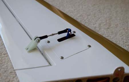 The flaps are just like the elevators. The rear most portion of the aileron servos must be up against the servo hatch door and you may have to sand down the most back end so that it does not hit the top of the wing when inserted into the aileron recess. Be careful. Space is limited. http://www.rcuniverse.com/forum/atta...mentid=2157796 |