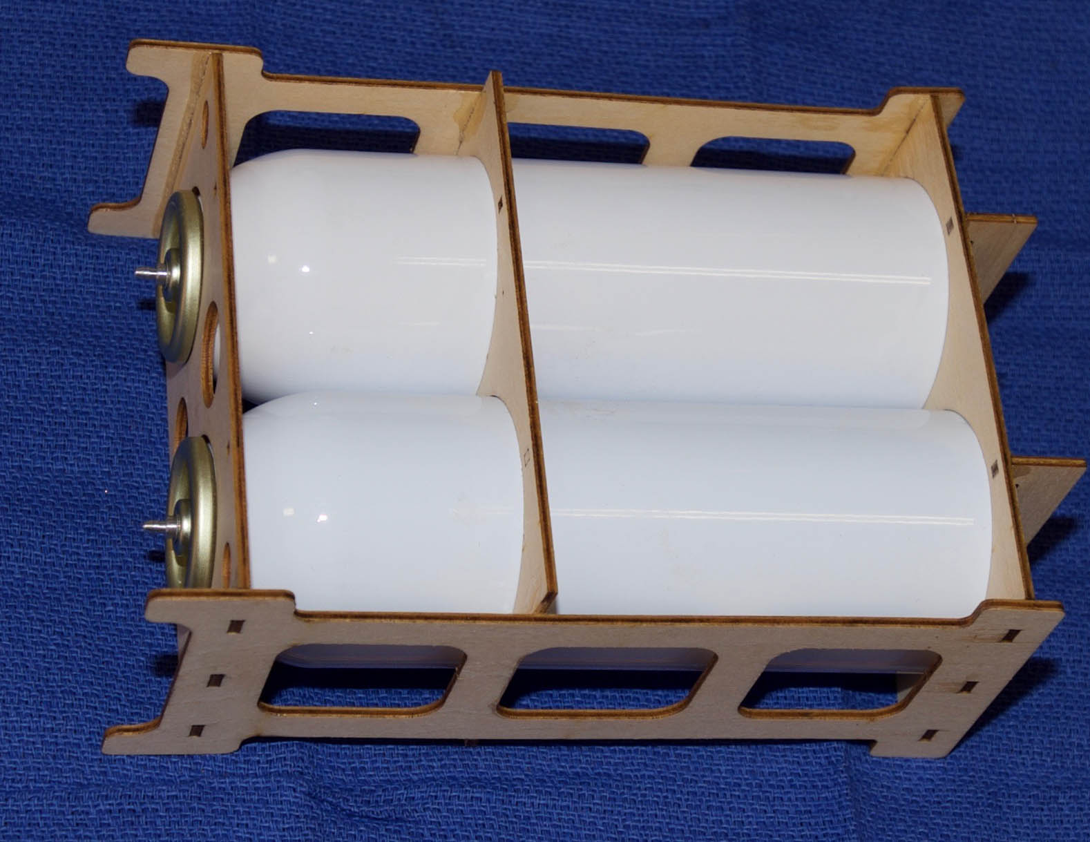 Make 2 pair of air banks using the supplied wood. The tabs on the rear should be glued lightly to allow for removal in case the cans need to be replaced by backing them out to the rear of the installation.