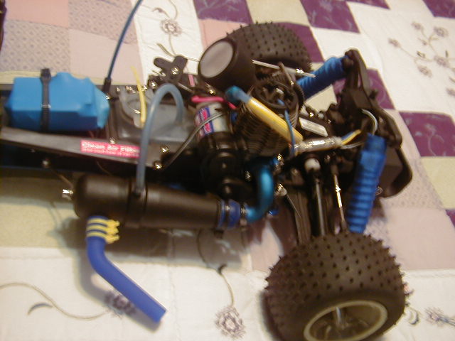 Here is mine, I really like it, the pics are old and if you want to know, I have Badhorsie racing shock covers, dubro fuel filter, duratrax failsafe(all are blue), fireline fuel tubing, blue dubro fuel filter clips and i have a proline body custom painted by me