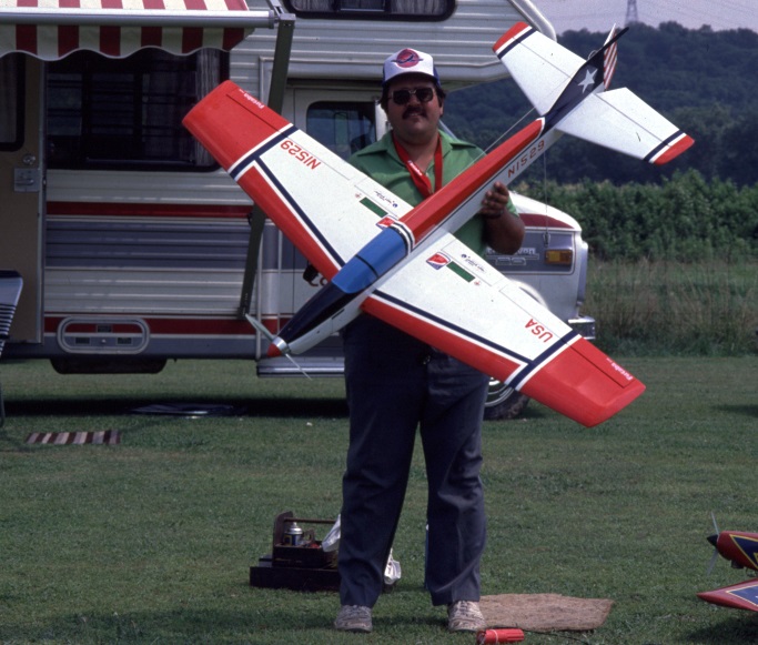 That's me with Harry in the middle pic. With the Challenge II airplane I'm getting ready to start that would make it 1985. Note the Variable Pitch prop in the front of it. I think the pic on the right is Harry holding Alan Dupler's Brushfire. Al built on with a single main gear and wing tip skids. That was when we were all trying to figure out the new Turnaround patterns.
