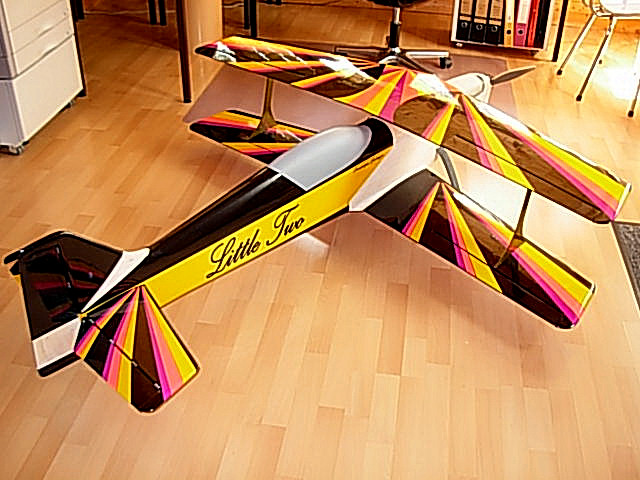 She flies very well. Downlines are slow. Rollings are very accurate (weight of wings and carbon tube is 970 g / 34 ounces).