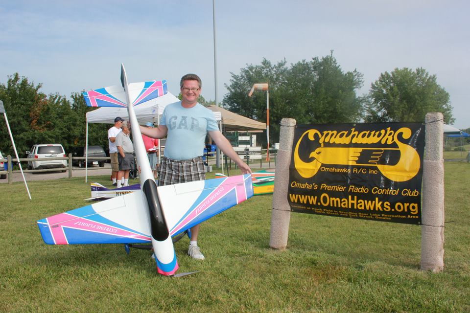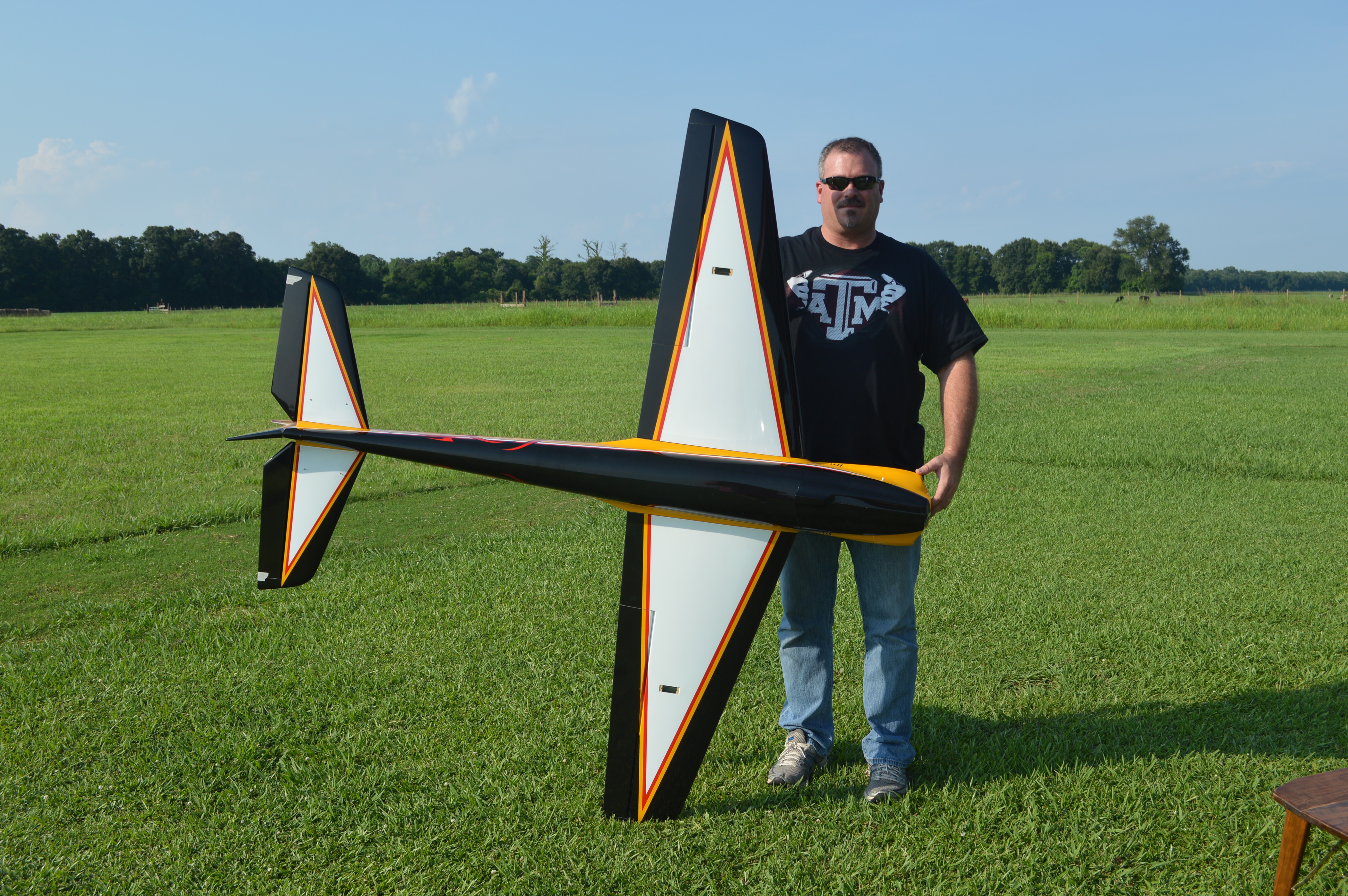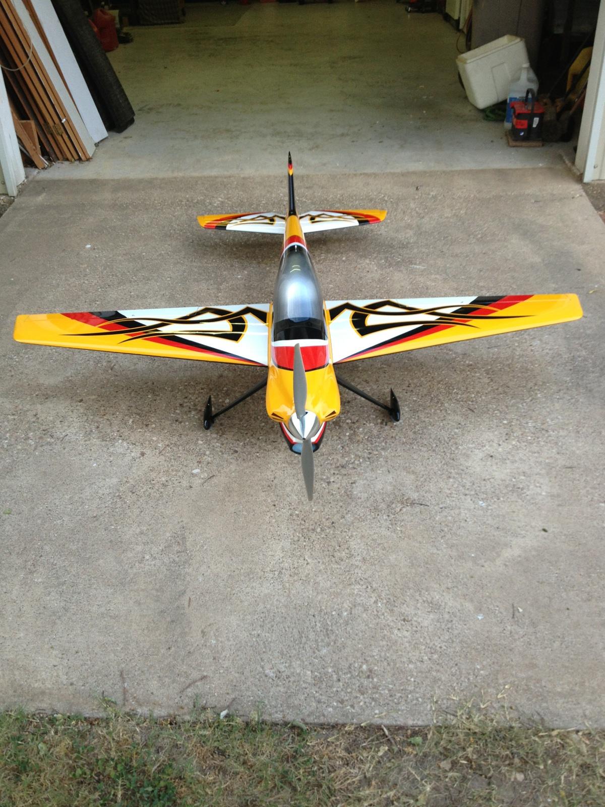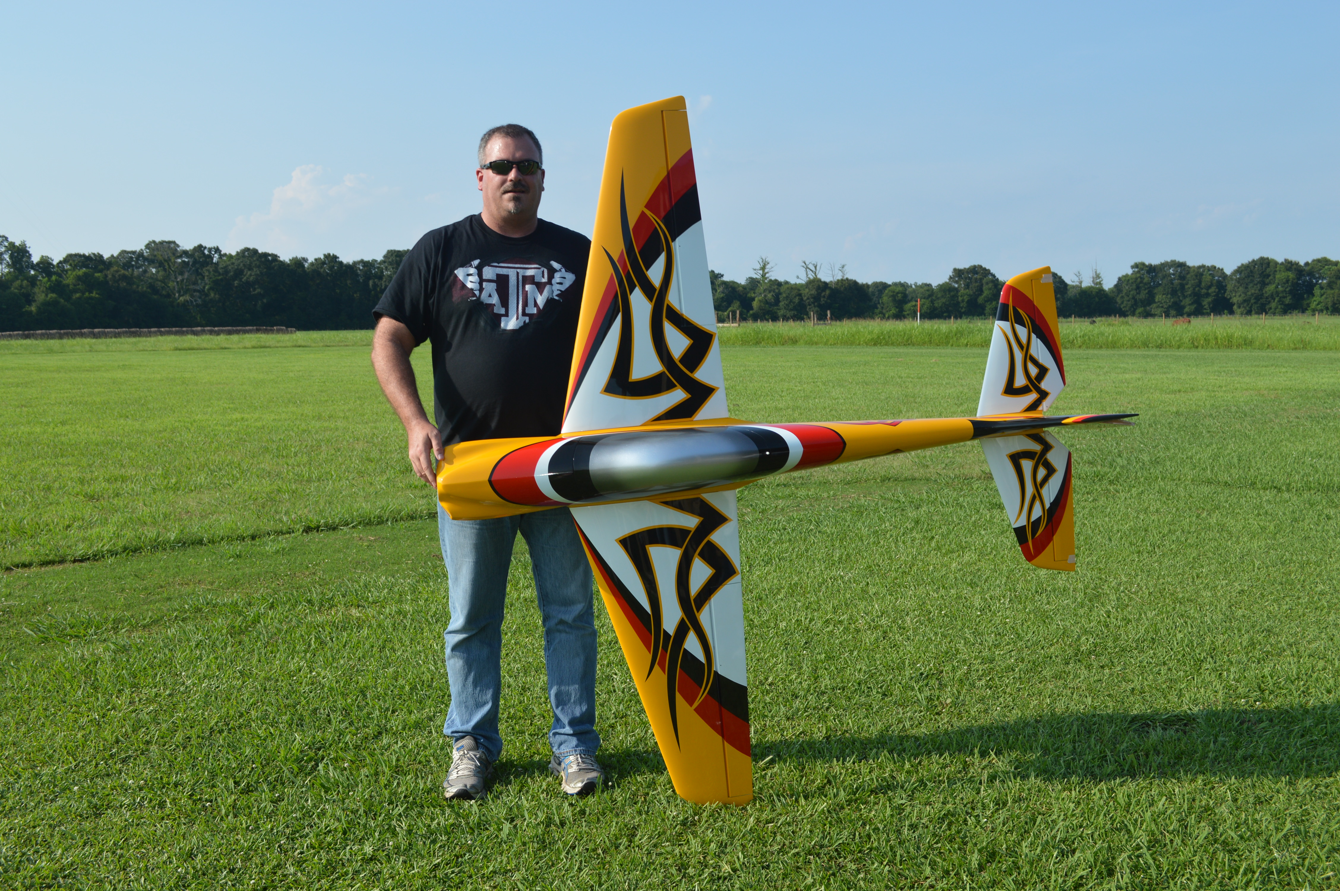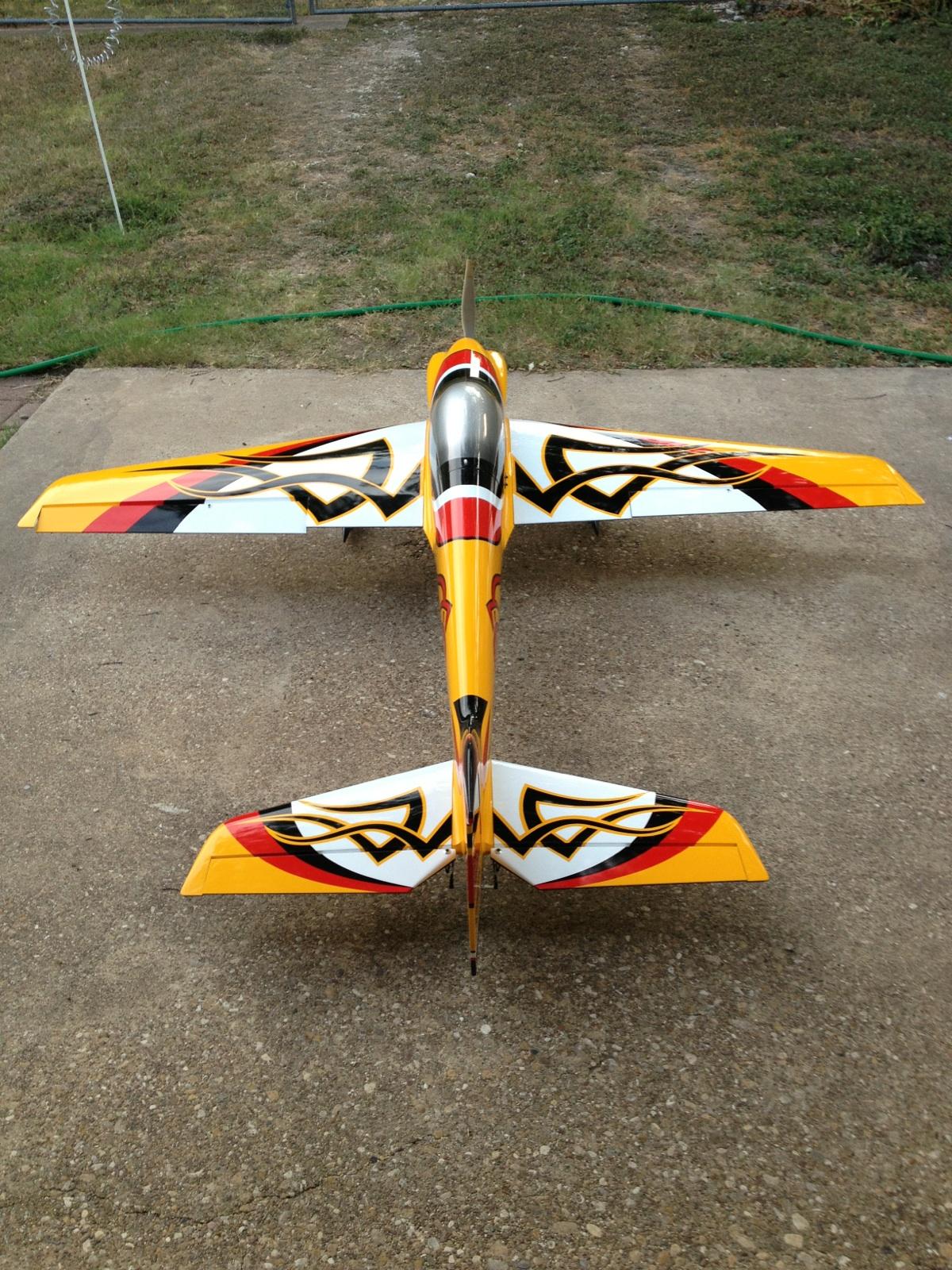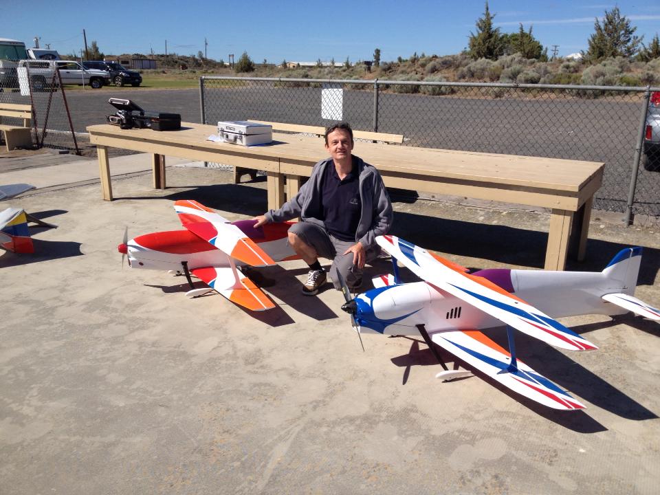 Here is a pic of me and my 2013 Vanquish by Extreme Flight !! Silver Bullet F3A motor, Hobbywing 100A ESC, Hitec & Solar Servos, 2200 mah rx pack, Orion Voltage reg, Turnigy 20C 10S Set-up. Flies the Masters sequence nicely, and look forward to flying it for a long time !!