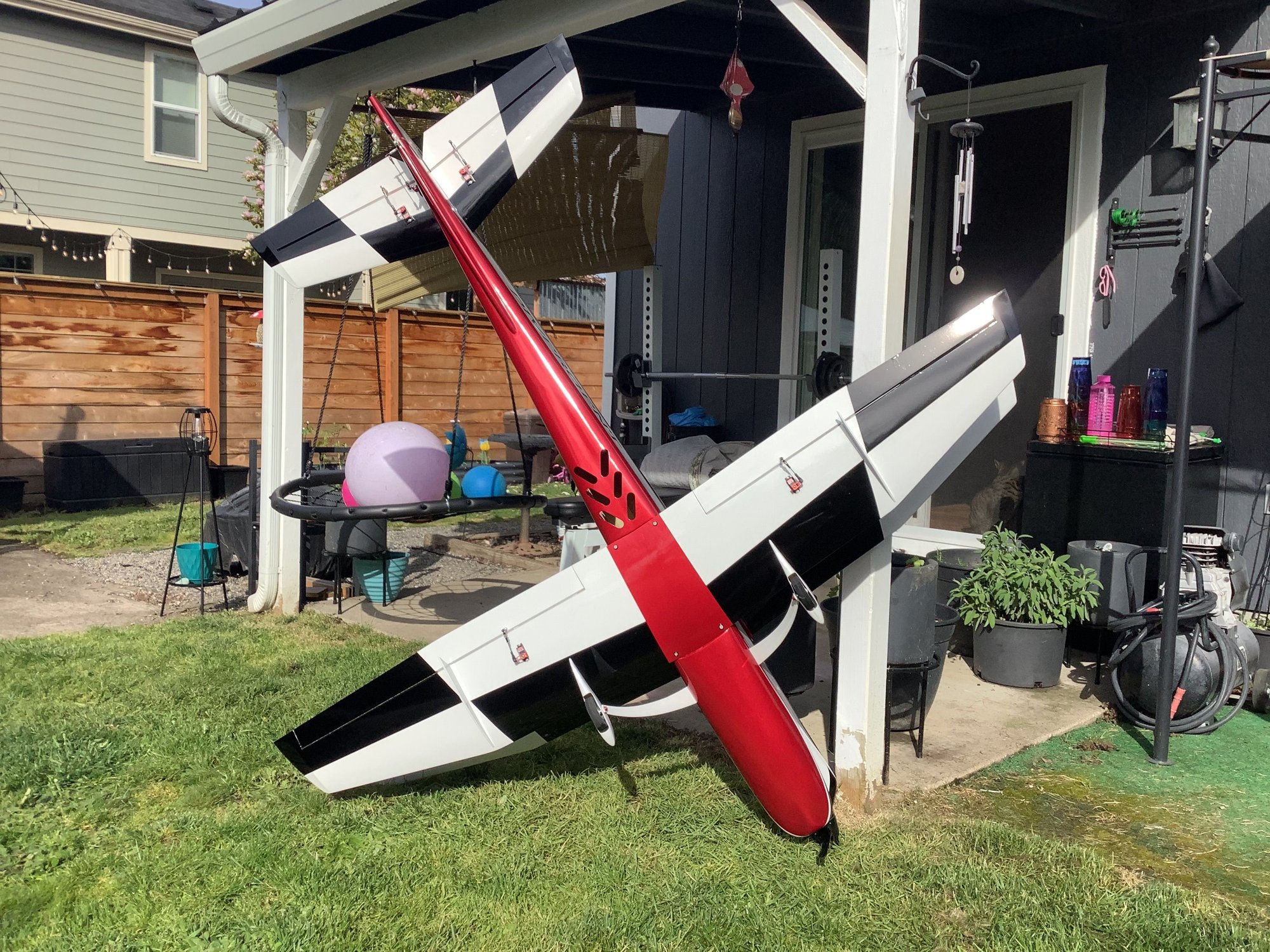 Latest version of my Divergent F3A design. This one has a little more vertical area and I raised the stab 3/4”. This one is powered by a Dualsky 6355 205 KV motor and Dualsky Summit 100 F3A ESC. Servos are all MKS 69HV driven by a Jeti DS16. Paint is all automotive base coat and 2K clear. I’m currently waiting for out grass runway to get dry enough to be mowed for the maiden flight.
