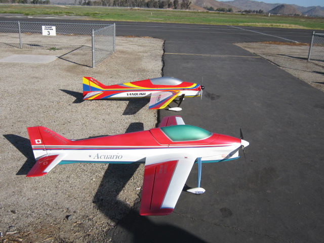 I have to say it was really tough seeing John and Greg's Nuances mid air. Greg was flying my old Nuance and John was flying his tried and true airframe. John's Nuance disappeared in the swift flowing water aquaduct and is likely a total loss. Greg flew his back and landed it. He did an awesome job bringing it home but it was damaged pretty badly. Tough to see and I hope both pilots come back quickly
