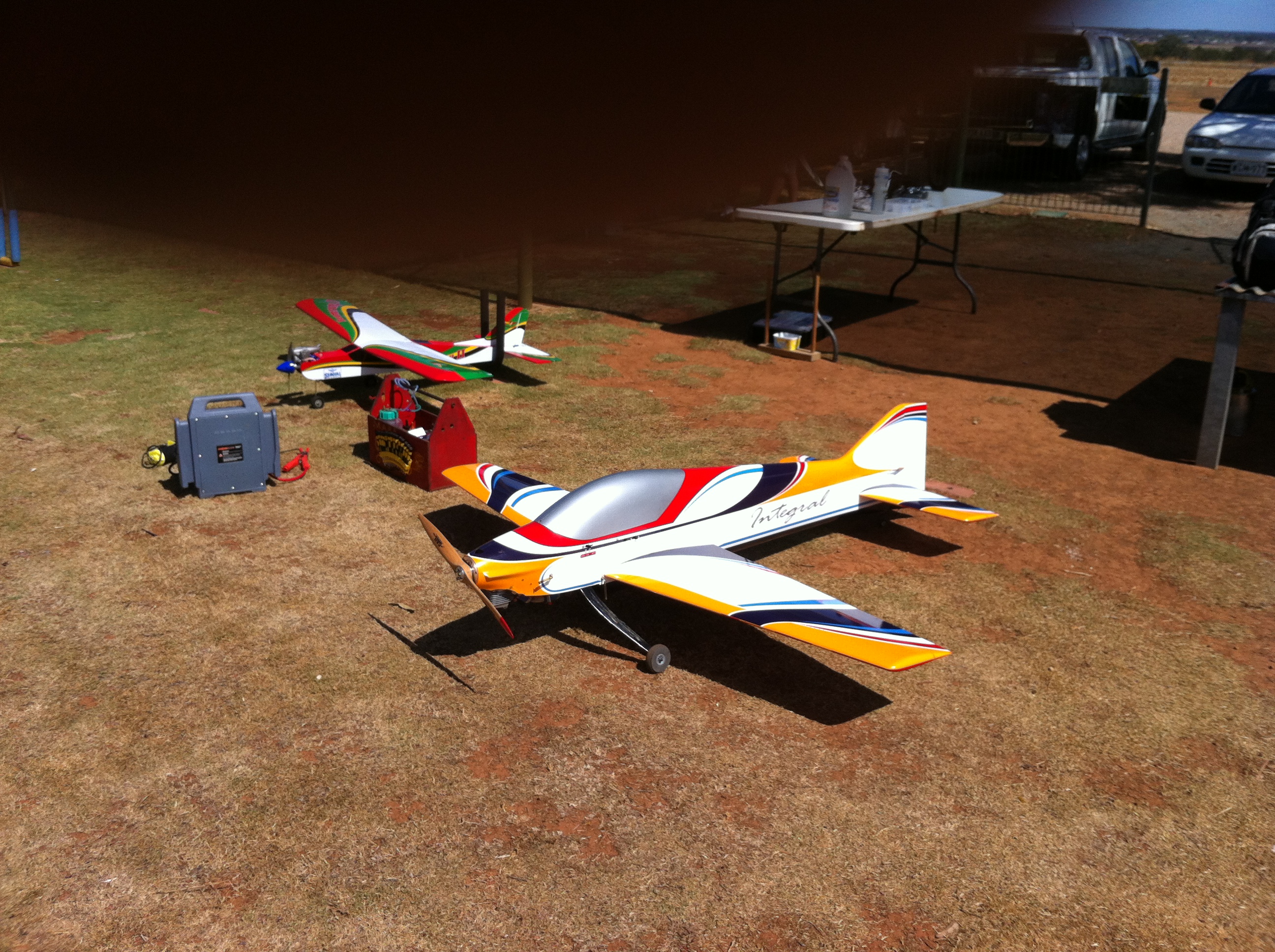 So far its meeting my design goal of allowing us to get in longer flights for more practice time with two sportsman sequences done with less than half a tank of fuel (500cc again bigger than needed). Now I just need to get a heap of time on the sticks and prove the move up was worth it!