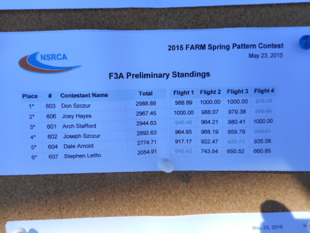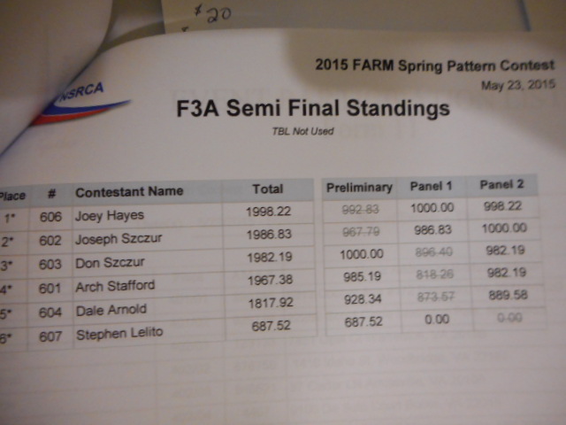 Great pattern contest. I'd like to thank Nic Burhans, the FARM club and Kirk Wicker for supporting this event. We had some unique events with this contest to include F3S jet pattern aerobatics and Classic Pattern as well as a fundraiser for the U.S. team. I think all had a good time attending. I'll get some details up when I get the chance.