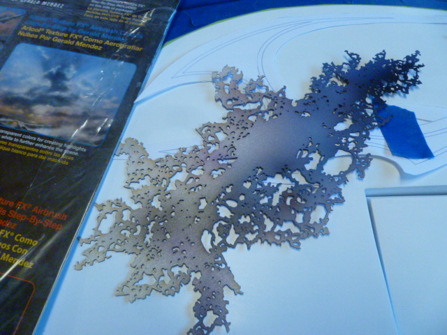 The first thing I did was lay down a little bit of texture with the Gerald Mendez FX Artool texture stencil. I would guess that just about every custom painting shop in the world owns these stencils....they are that good.