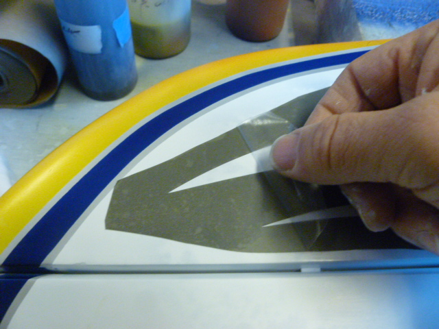 I then pull the film from the center part of the graphic and mask off the inside (1/8 inch) line.