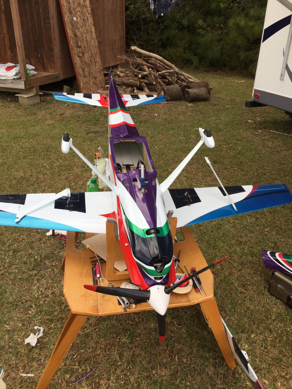 Papaone, that picture was taken at the Cajun Nationals, and that is a picture of the Allure biplane. The designer Bryan Hebert has been testing his own handmade 3 blade props on the Allure and the Allure Biplane for awhile now. He is getting close to finishing his testing and has been working on lining up a manufacturer to produce them. They are not available yet, but hopefully will be in the near future.