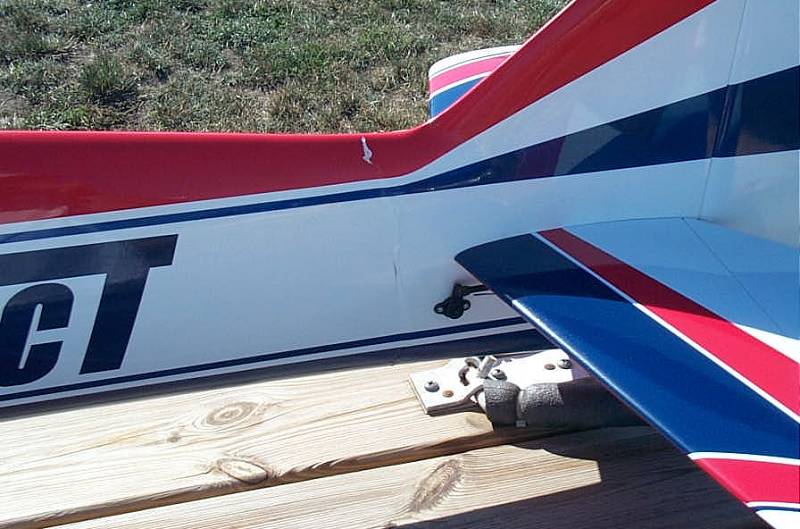 Mike is correct. I have never restrained my Impact from the stab. Always in front of the landing gear. Furthermore, I never snapped or even spun the model. I didn't take pictures of it, but last night while examining the stock rudder I noticed indents on both side in the front of the rudder that line up with the edges of the back of the fuse. It could be cause by the rudder hinges flexing. I used real Robart hinge pins and not the ones that come with the model. The indents could also be caused by the rudder hitting something while I was carrying it in and out of the basement. I also carry my planes rudder first.