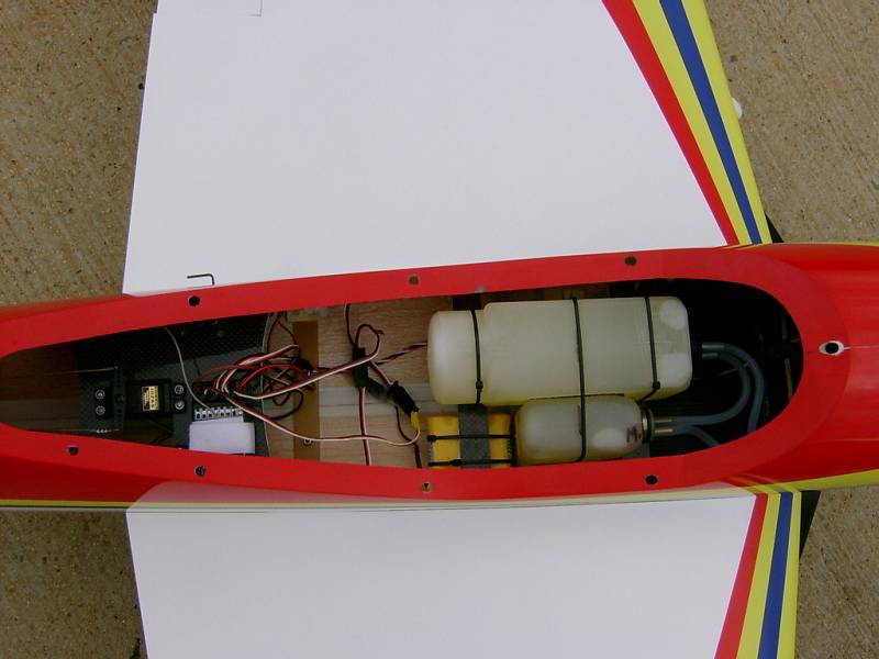 I had installed a rear former and a horizontal plate, just as is recommended in CARFs update on their website. I also had installed a bulkhead directly behind the canopy. From that bulkhead to the rear former I installed a 1" thick piece of foam horizontally. It was glued to the sides of the fuse and to the former . The break in the fuse was right at the former. The glue joint between the former and the foam stiffner had not broken all the way through. I had my elevator servo mounted between the wing. Except for using a bellcrank in the tail with pull pull cables back to the servo, and real Robart hinge points, the tail assembly was stock.