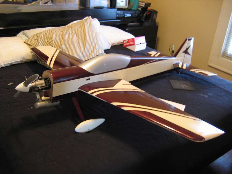 I am gonna try to change some hardware and lose a few ounces, but since I fly more pattern than 3-d stuff, with the weight it cuts through the wind like a Goldberg Extra (real well)